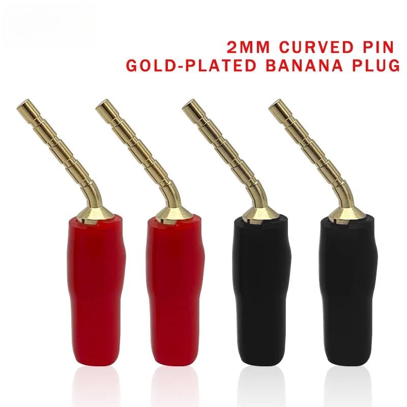 20 шт. Красно-черные изогнутые штырьковые 2 мм разъемы типа «банан» под прямым углом, штекеры «банан», аудио, кабель для динамиков, разъемы