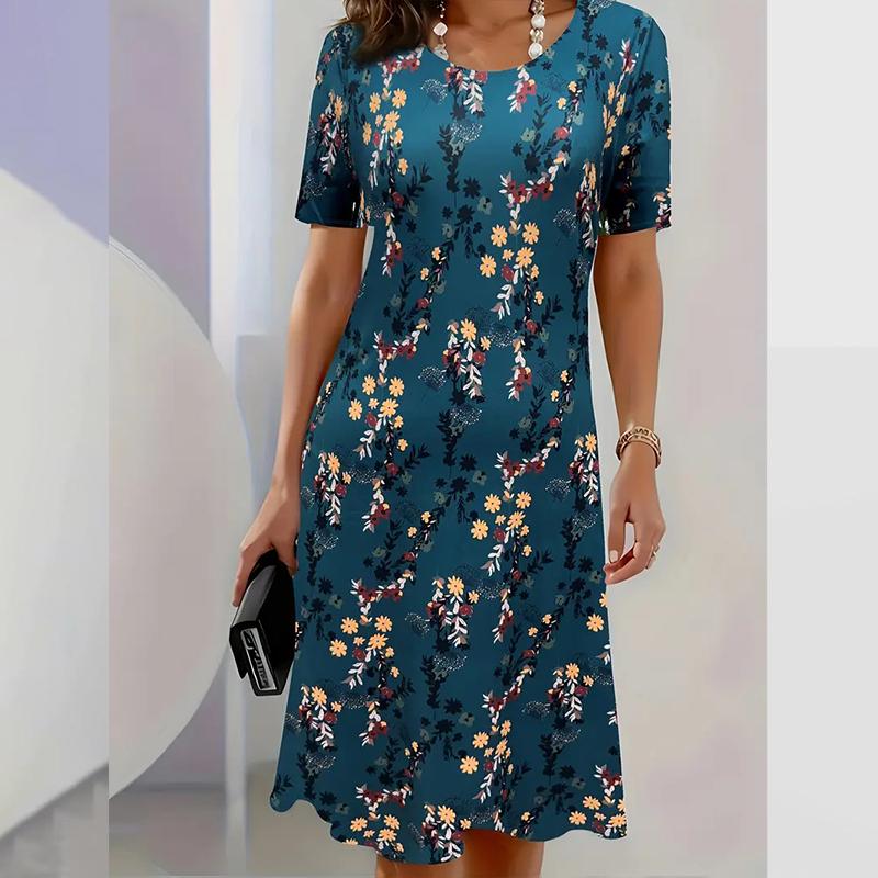 Модное женское свободное платье-трапеция с цветочным принтом и коротким рукавом и принтом листьев — купить товар онлайн с бесплатной доставкой по всему миру!