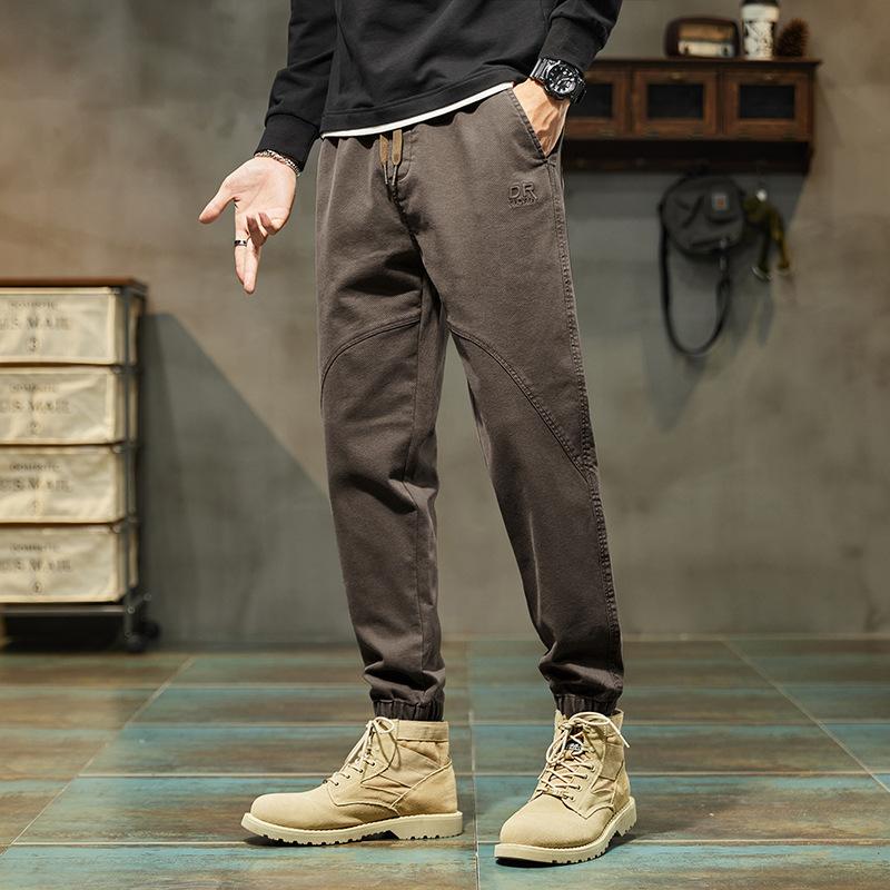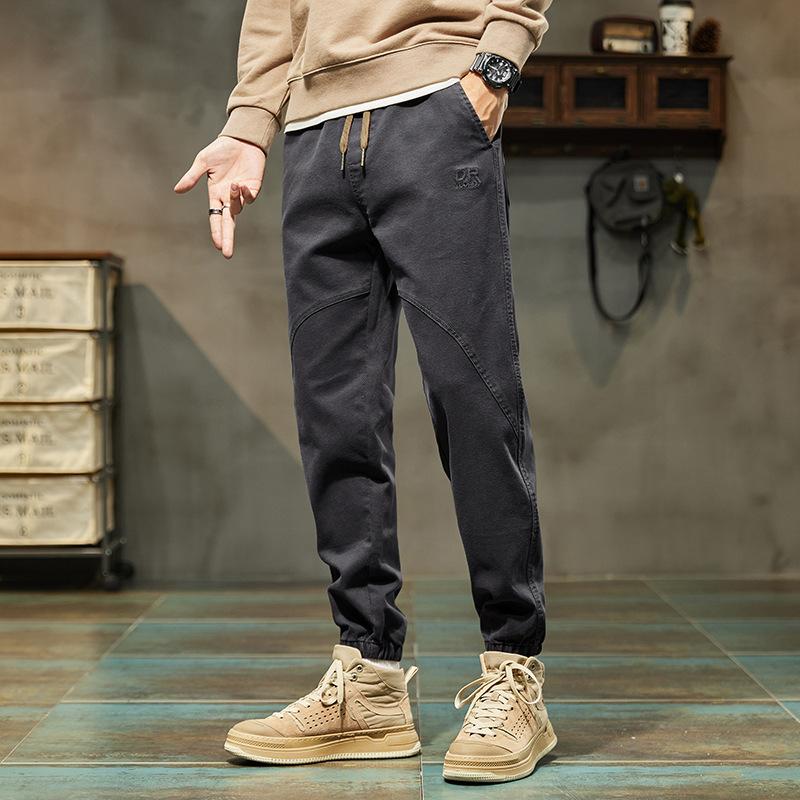 Весенние и осенние повседневные брюки из искусственной коровьей кожи с завязками на ногах. Повседневные универсальные мужские брюки. Модные, удобные и стильные брюки для мужчин.