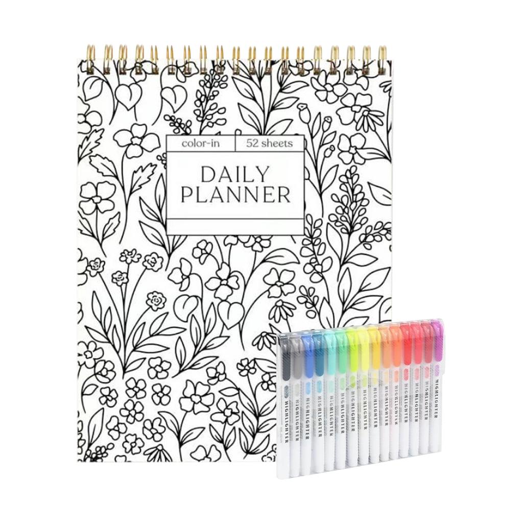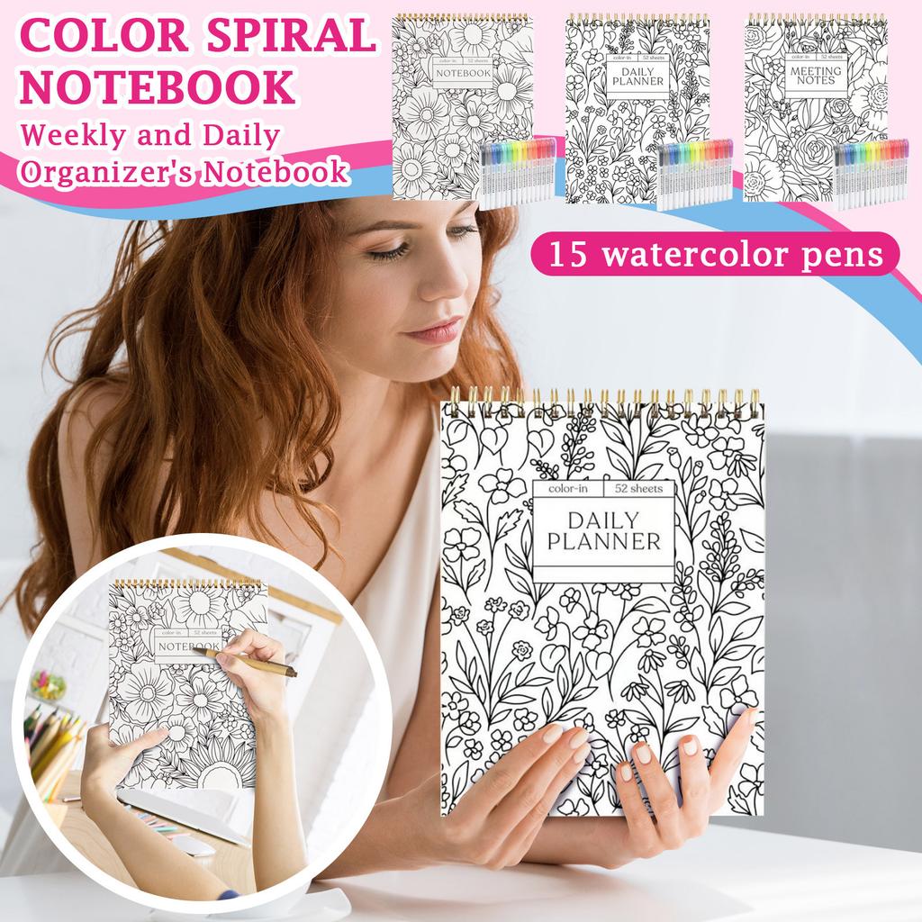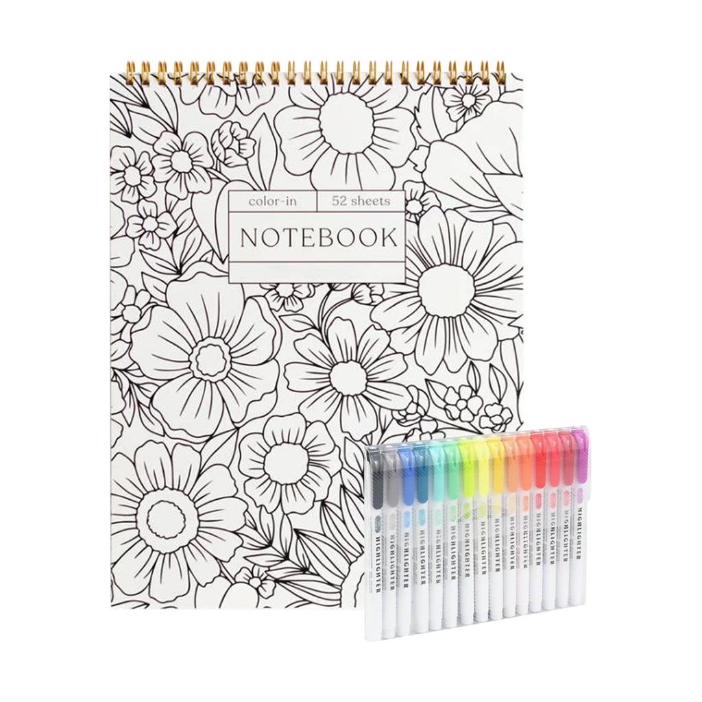 Красочный спиральный блокнот и ежедневник, красивый цветочный дизайн дневника, цветочные заметки раскраска, оснащен 15 маркерами 1 мл