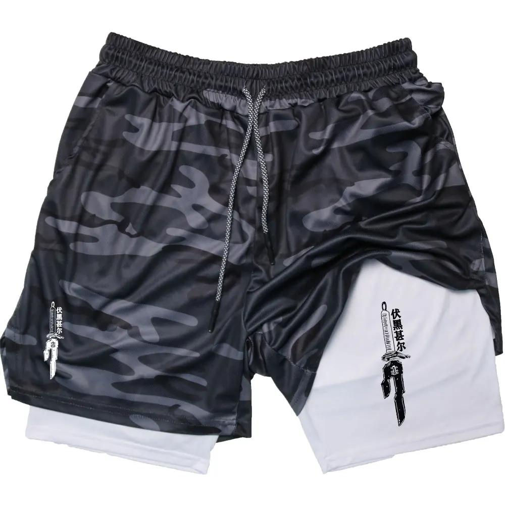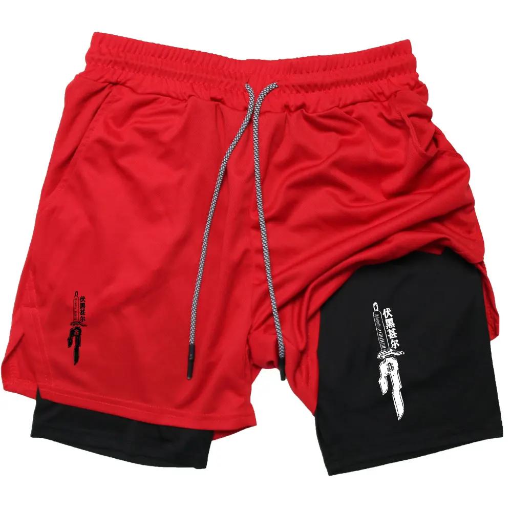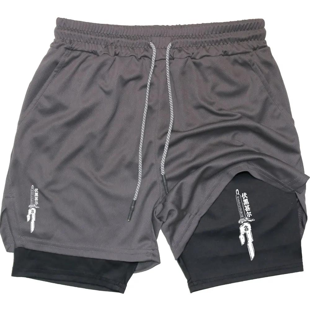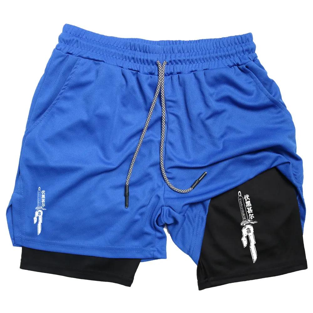 Мужские шорты Anime Performance GYM Casual Sports Summer Compression Shorts Workout Running Mesh 2 In 1 Sport Shorts