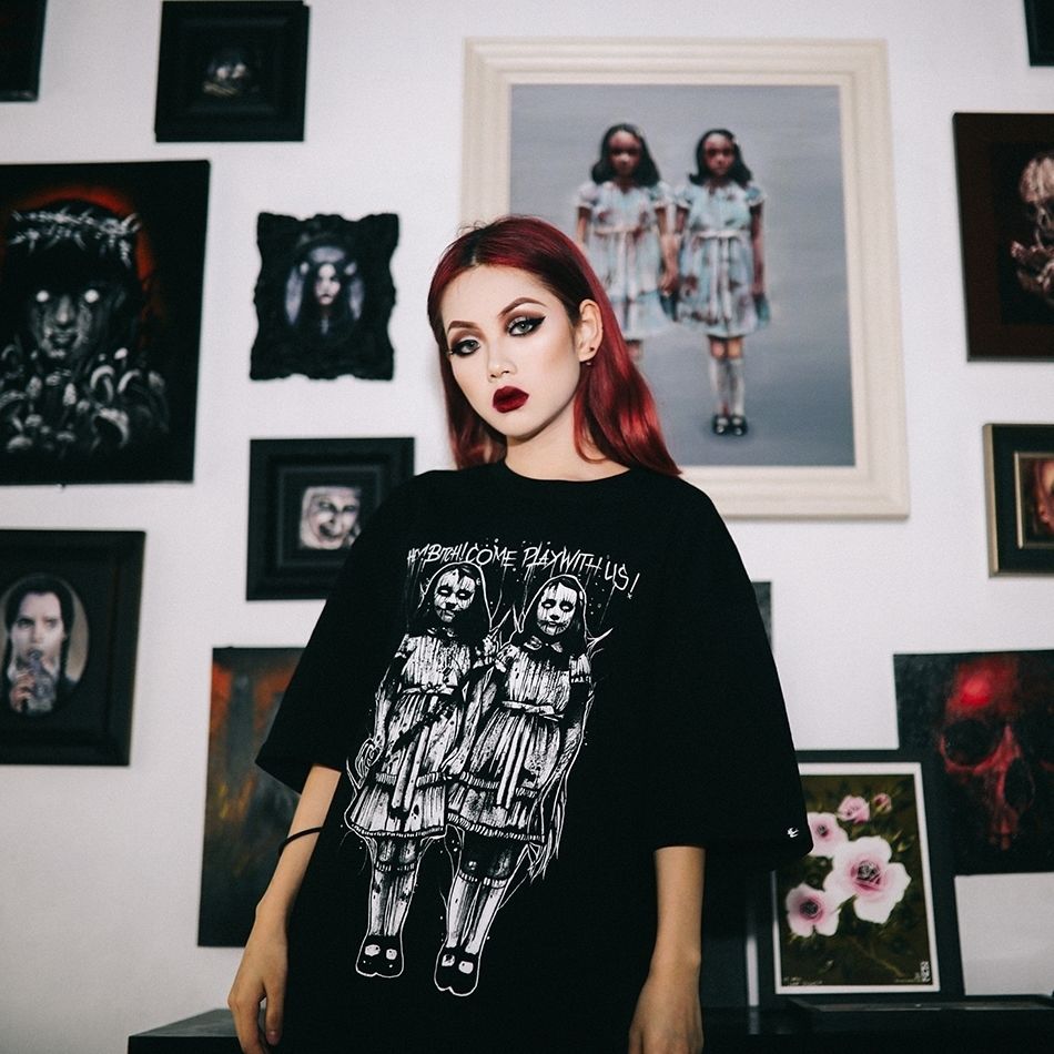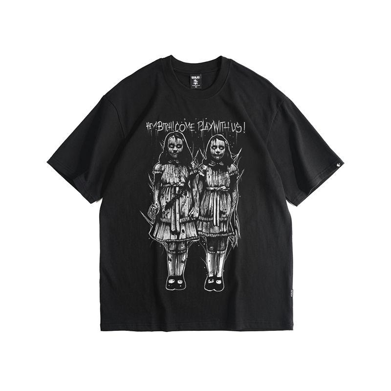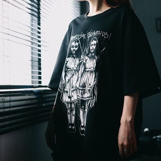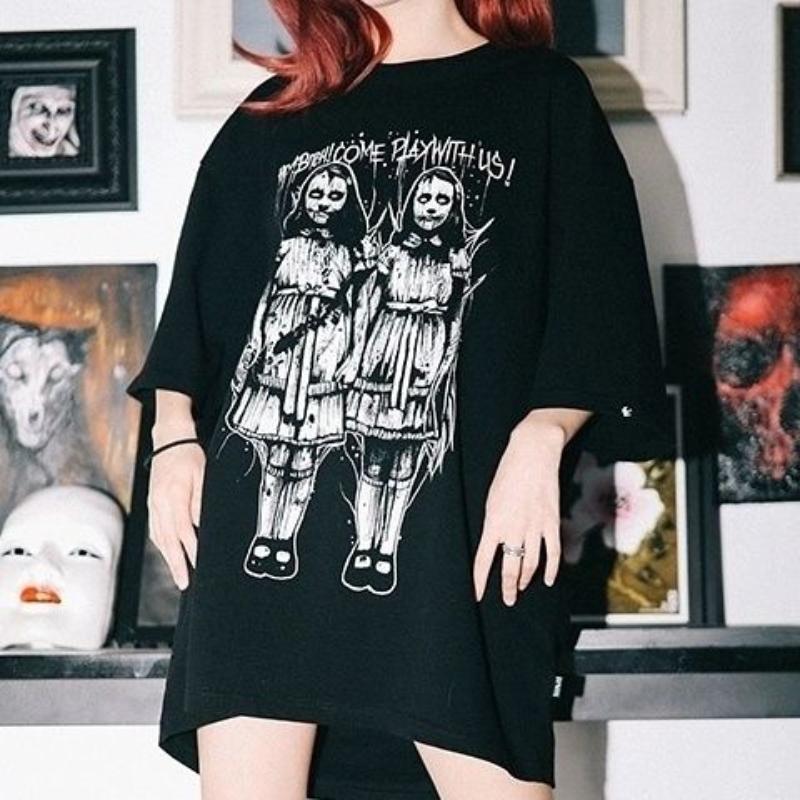Женская готическая футболка Creepy Twin Girls Skull Printed Harajuku Novelty Clothing Tops Mutated Rock Футболка Женская одежда