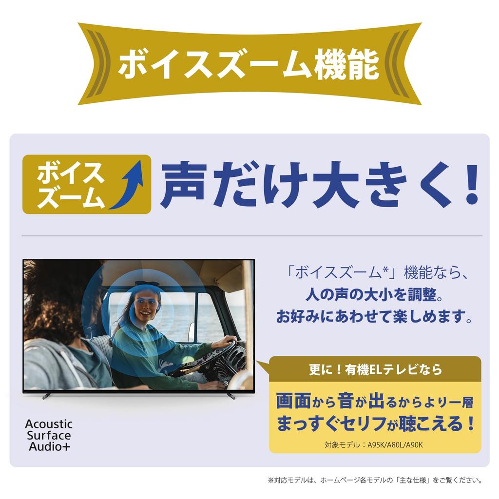 Использует запатентованную акустическую технологию Sony «Acoustic Surface Audio Plus», которая создает высококачественный звук непосредственно с экрана.. Привод заставляет экран вибрировать, создавая звук, соответствующий положению объекта, создавая реалистичный звук, исходящий непосредственно от экрана.