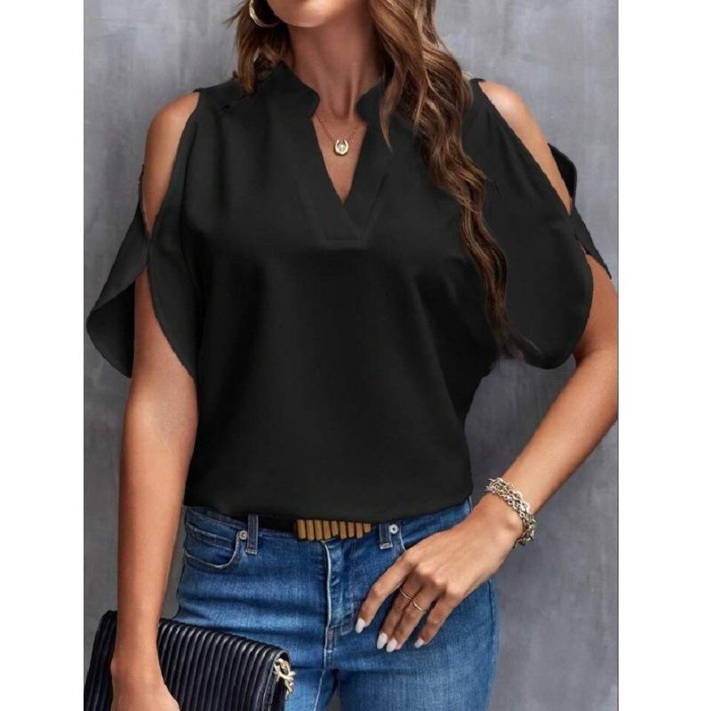 Женский летний однотонный свободный шифон с V-образным вырезом и открытыми плечами