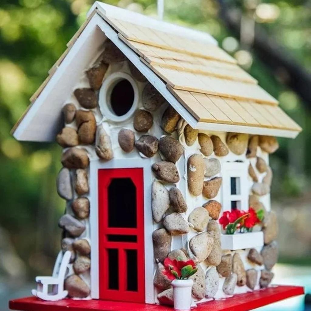 Прочный смоляной домик для птиц для наружного декора, погодное садовое гнездо для птиц со стильным дизайном, украшение для гнезда для птиц на заднем дворе и в саду