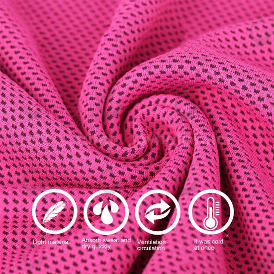Передовая технология охлаждения: Охлаждающее спортивное полотенце из полиэстера быстро впитывает тепло и быстро охлаждается, обеспечивая освежающее и комфортное ощущение.. Сетчатая структура улучшает воздухопроницаемость и впитывание пота, обеспечивая оптимальное охлаждение.