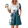 Женские летние повседневные платья с круглым вырезом, плиссированные, с карманами, с принтом, с коротким рукавом