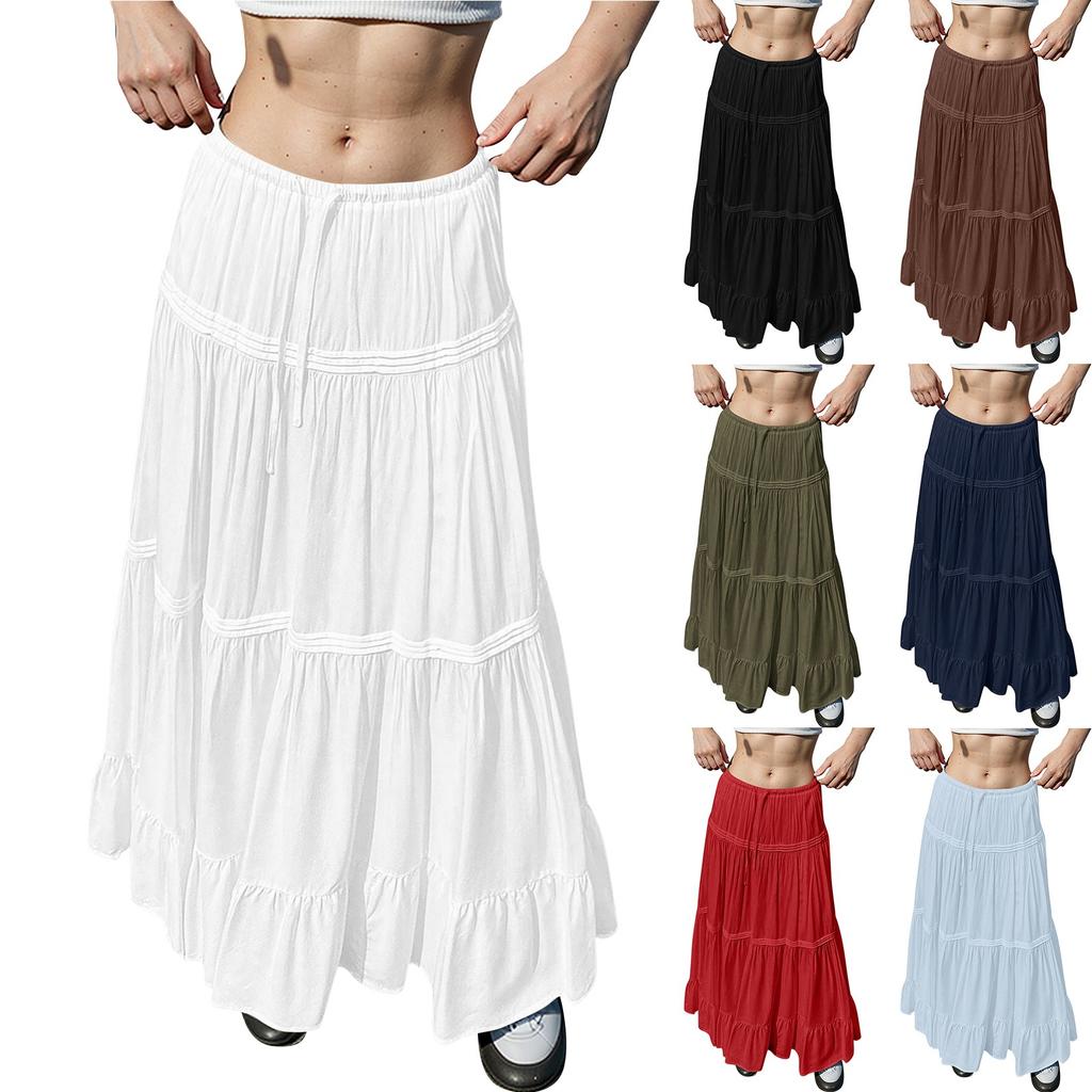 Женские струящиеся расклешенные юбки-макси с оборками и эластичным поясом, элегантные многослойные длинные юбки в стиле бохо — купить товар онлайн с бесплатной доставкой до всему миру!
