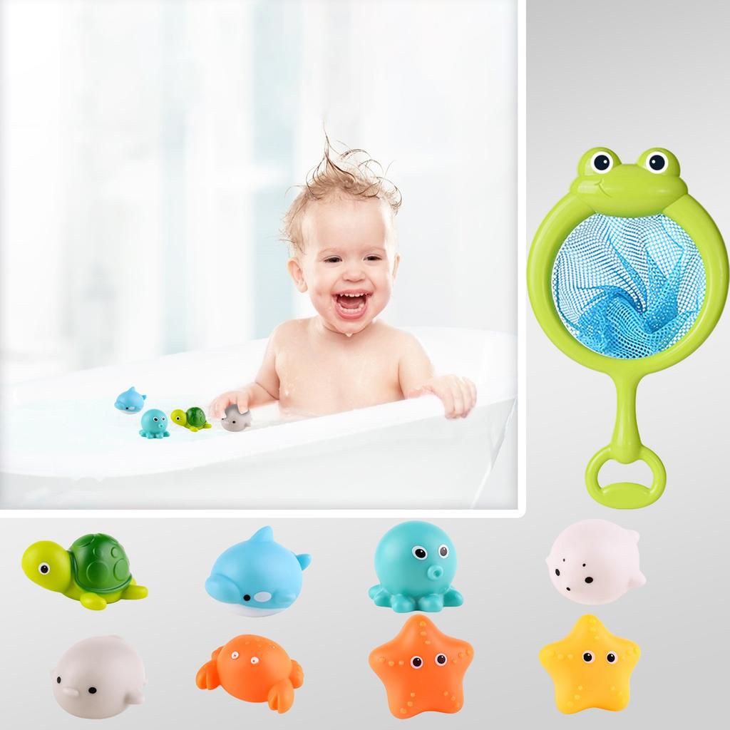 [Улучшение для рыбалки и игр в воду] В комплект входят рыболовная сеть и 4 плавающих маленьких животных, а также световое шоу, рыболовная сеть и плавающие игрушки для стимуляции сенсорного развития детей и веселья в воде, а также тренировки координации движений рук и глаз.. Когда светящиеся косяки рыб плывут по волнам, дети могут превратиться в маленьких рыбаков для игр в ловлю.. Брызги воды повышают их чувствительность к движению, превращая процесс купания в увлекательное интерактивное занятие для родителей и детей.