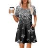 Женские летние повседневные платья с круглым вырезом, плиссированные, с карманами, с принтом, с коротким рукавом