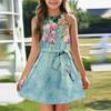 Летнее платье для девочек Платье без рукавов на бретельках Однотонное платье без рукавов с принтом Повседневное платье