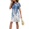 Женское модное повседневное летнее платье с цветочным принтом в стиле ретро и коротким рукавом и круглым вырезом