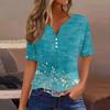 Женская повседневная футболка с коротким рукавом и V-образным вырезом, декоративная отделка пуговицами