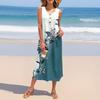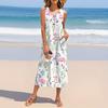 Женское летнее платье с цветочным принтом без рукавов на пуговицах, повседневный свободный длинный пляжный сарафан