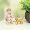 Деревянная скульптура мальчика и кота, фигурки животных ручной работы, деревянная декоративная коллекционная фигурка для домашнего офиса, натуральная, экологически чистая