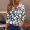 Жен. Футболка С принтом Пуговицы Рукав 3/4 Повседневные Выходные Мода Классический Классический V-образный вырез Обычный Верх — купить товар онлайн с бесплатной доставкой до всему миру!