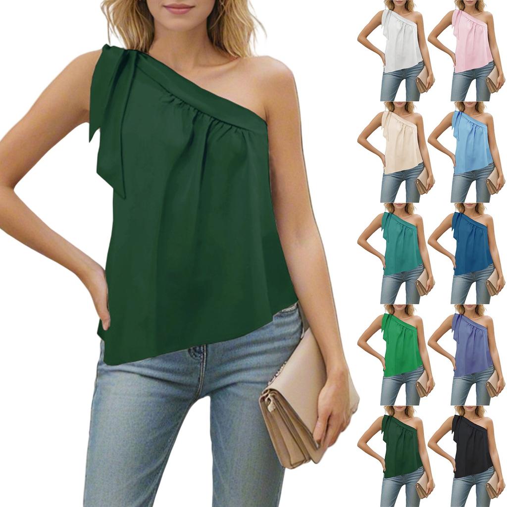Женская летняя рубашка свободного кроя с завязками на одно плечо без рукавов — купить товар онлайн с бесплатной доставкой до всему миру!