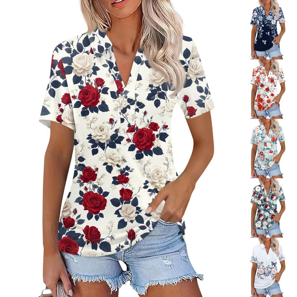 Женская мода повседневная рубашка с коротким рукавом и лацканами, женские топы с V-образным вырезом — купить товар онлайн с бесплатной доставкой по всему миру!
