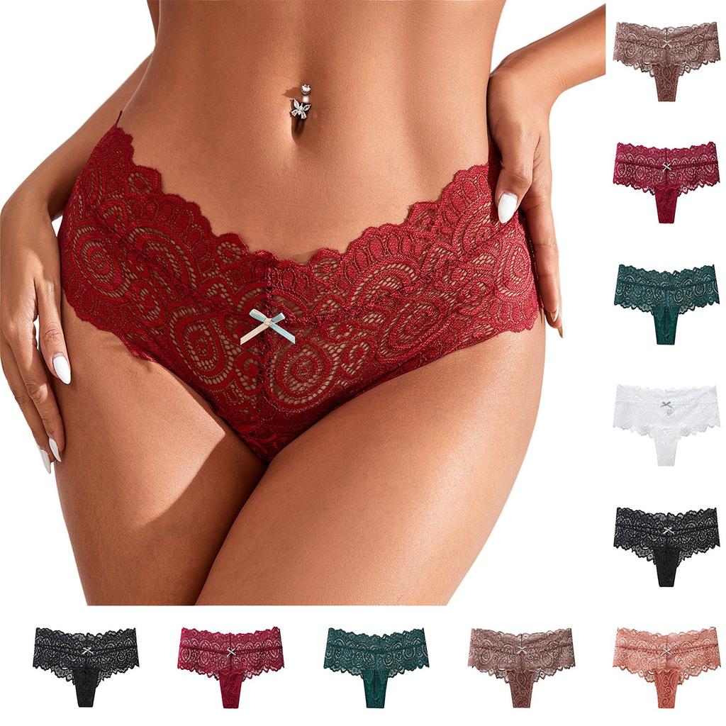 Женские однотонные кружевные сексуальные бесшовные дышащие трусики с заниженной талией и бантом