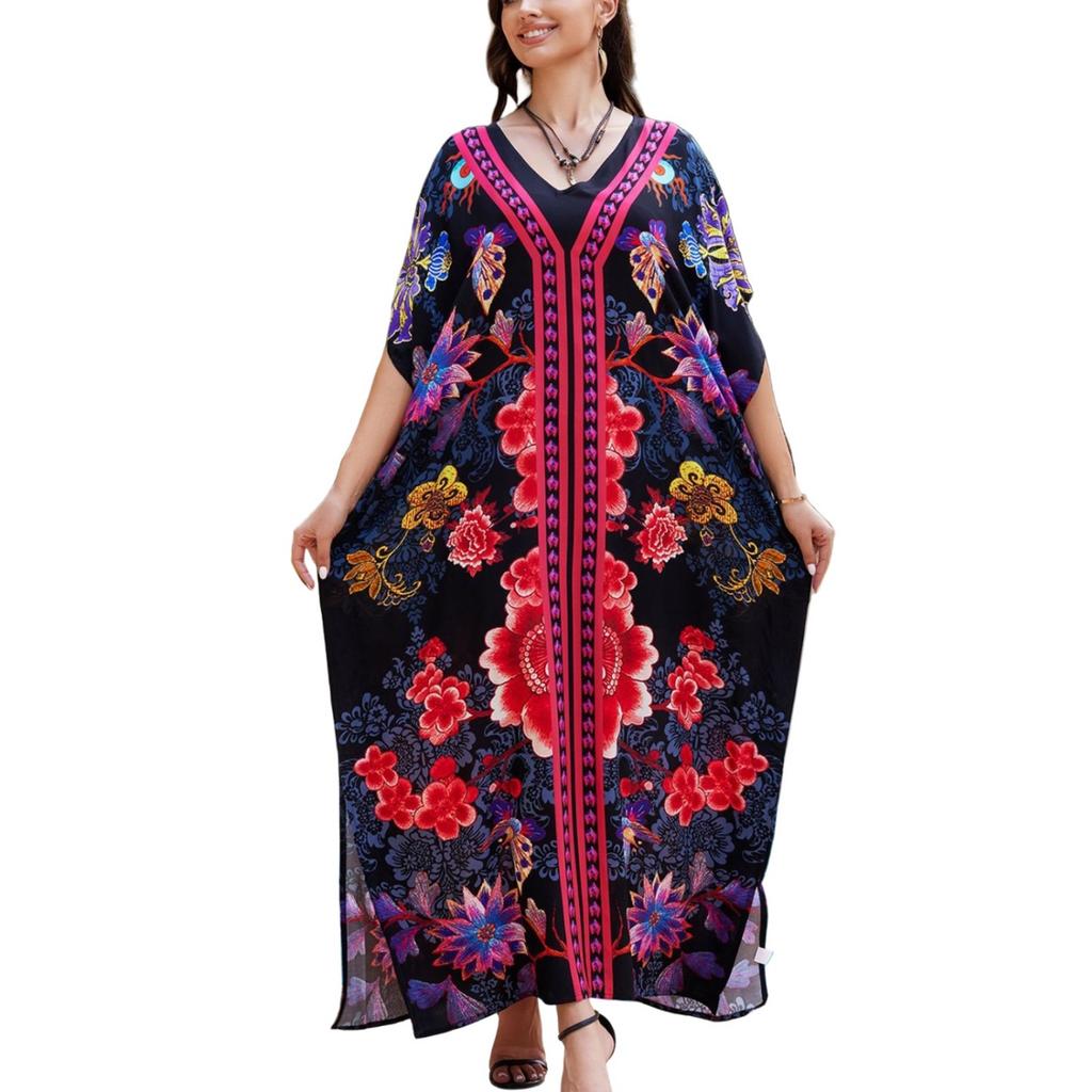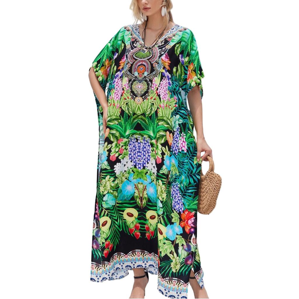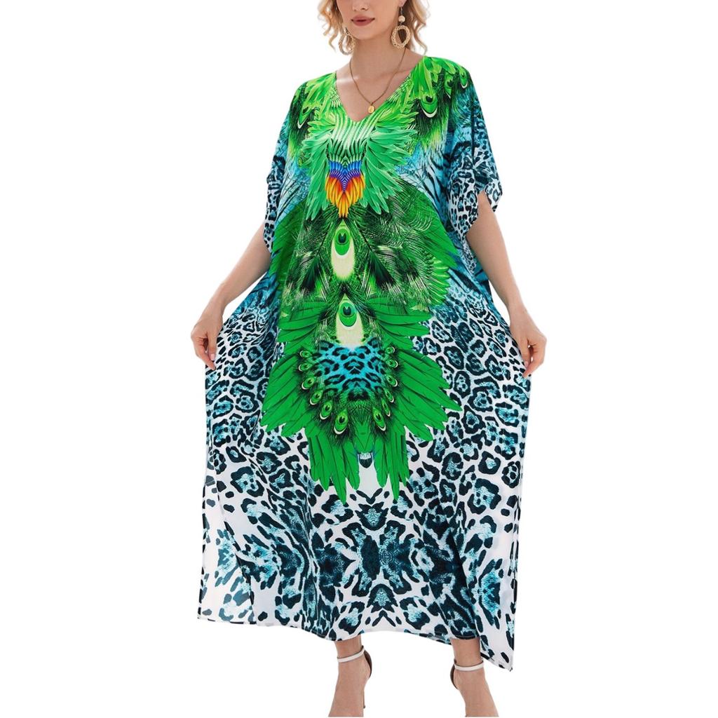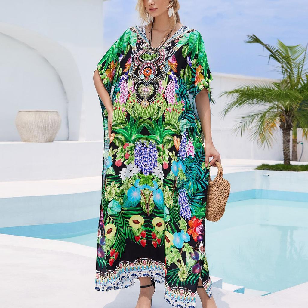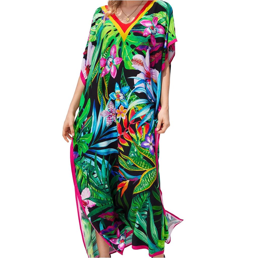 Пляжная накидка с красочным цветочным принтом, свободный халат для отдыха, бикини, рубашка от солнца
