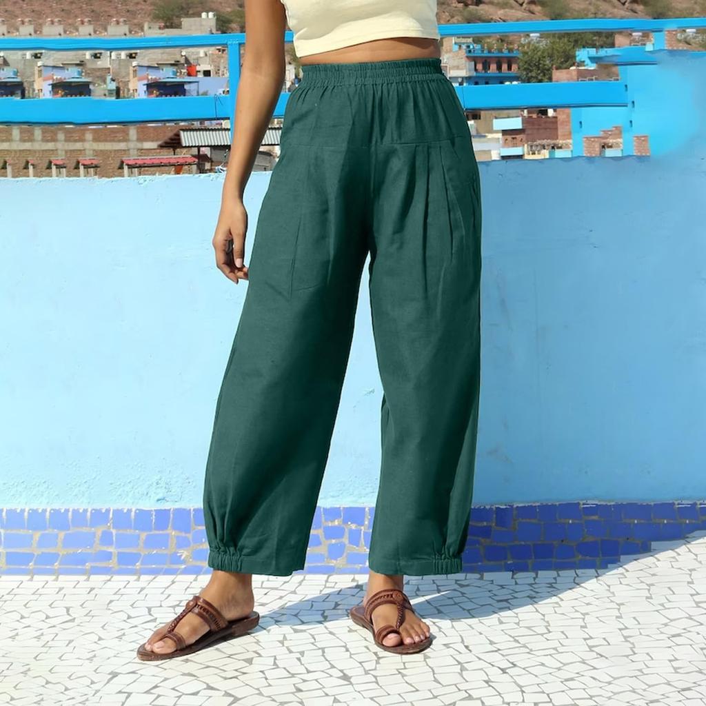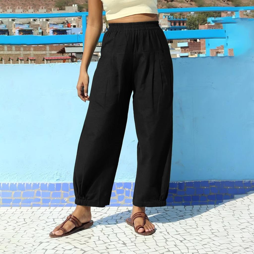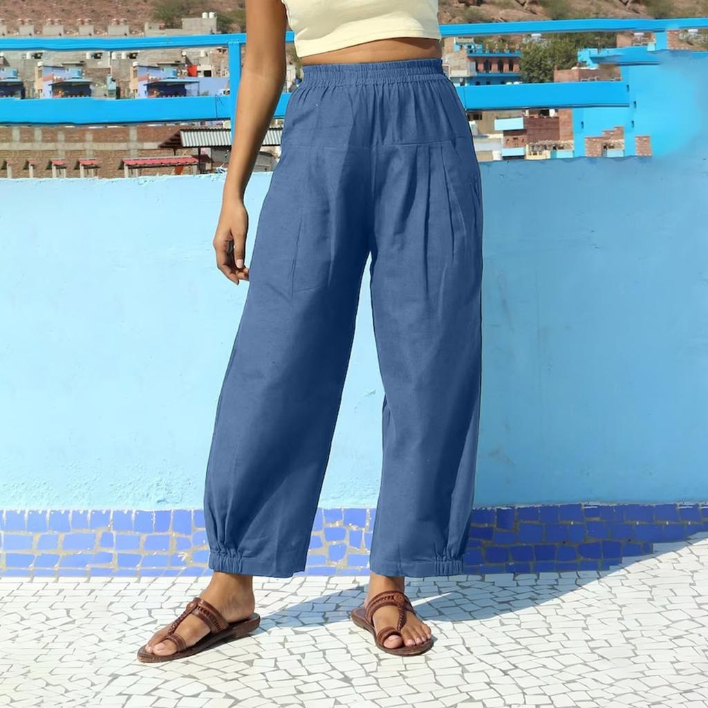 Женские брюки, повседневные однотонные брюки с карманами, эластичный пояс, свободные брюки