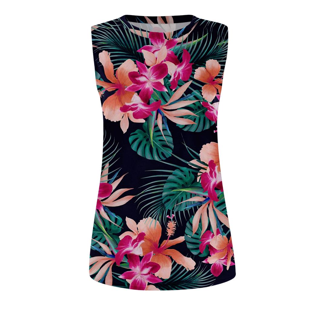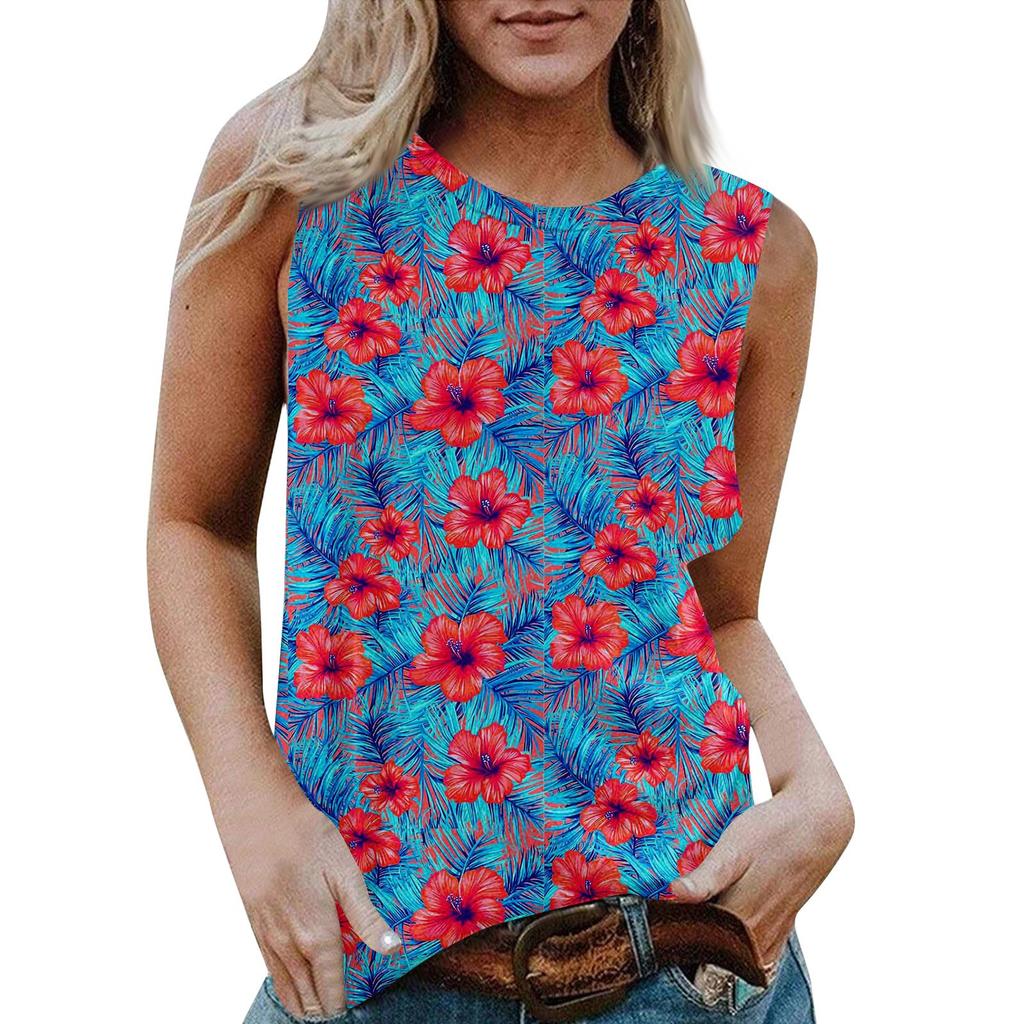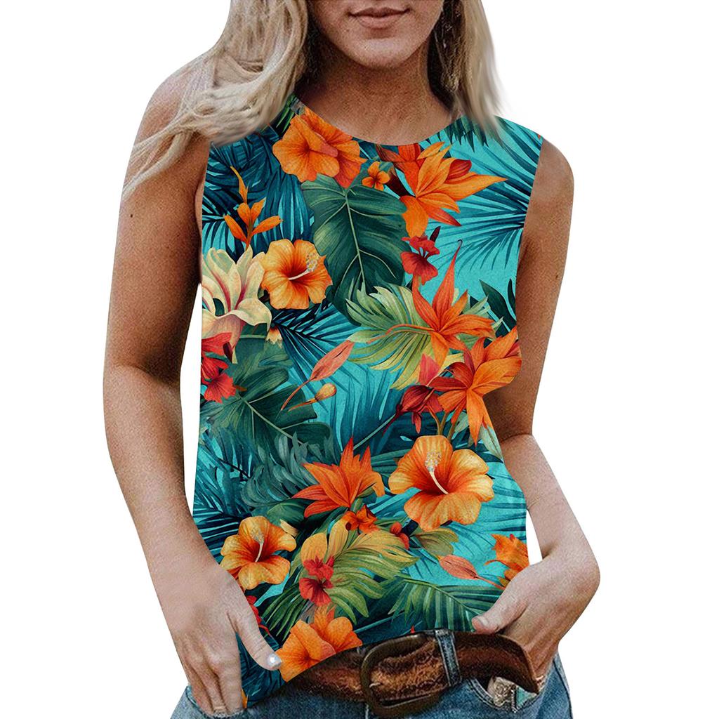 Женская повседневная футболка без рукавов с круглым вырезом и гавайским принтом
