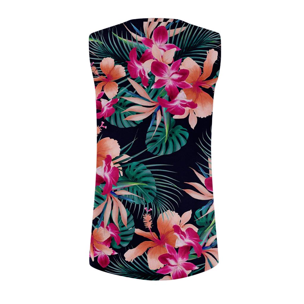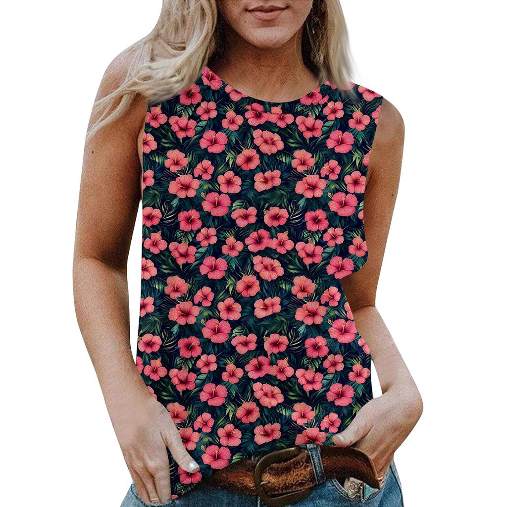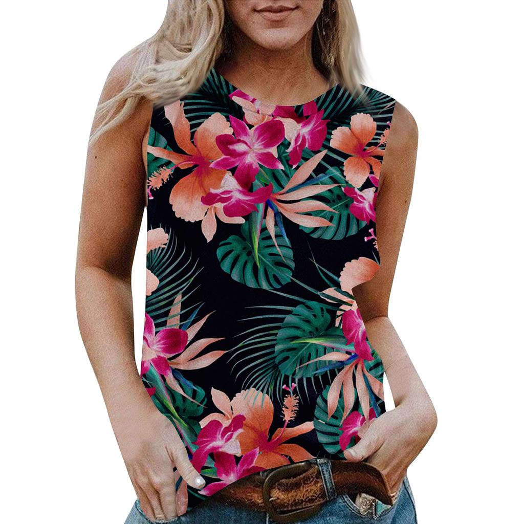 Женская повседневная футболка без рукавов с круглым вырезом и гавайским принтом