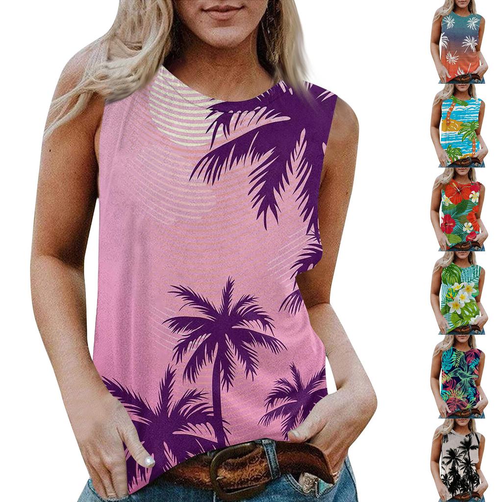 Женская повседневная футболка без рукавов с круглым вырезом и гавайским принтом — купить товар онлайн с бесплатной доставкой до всему миру!