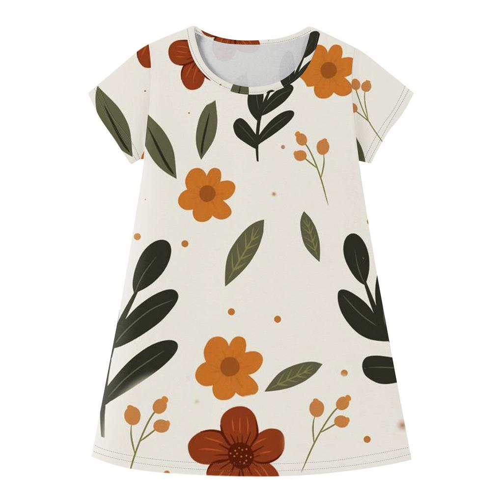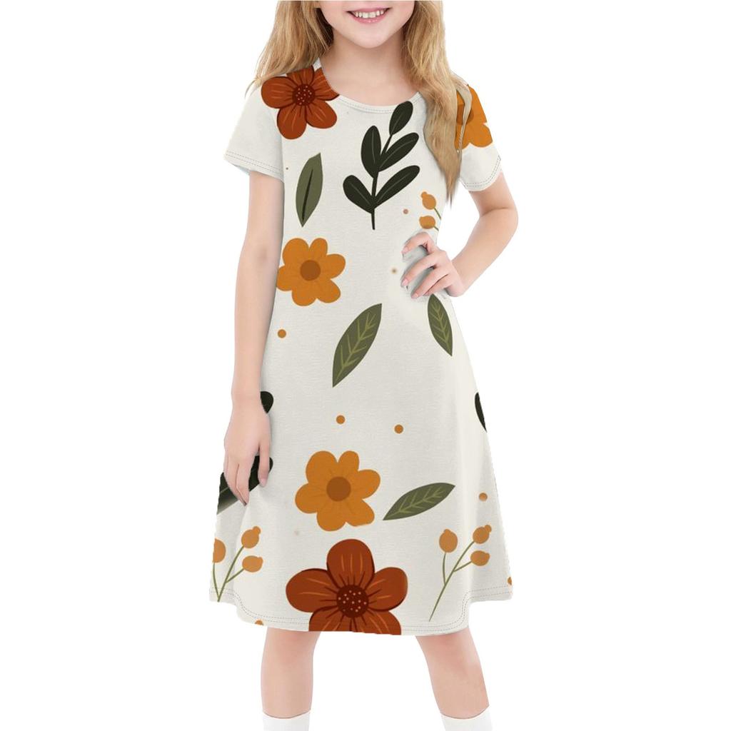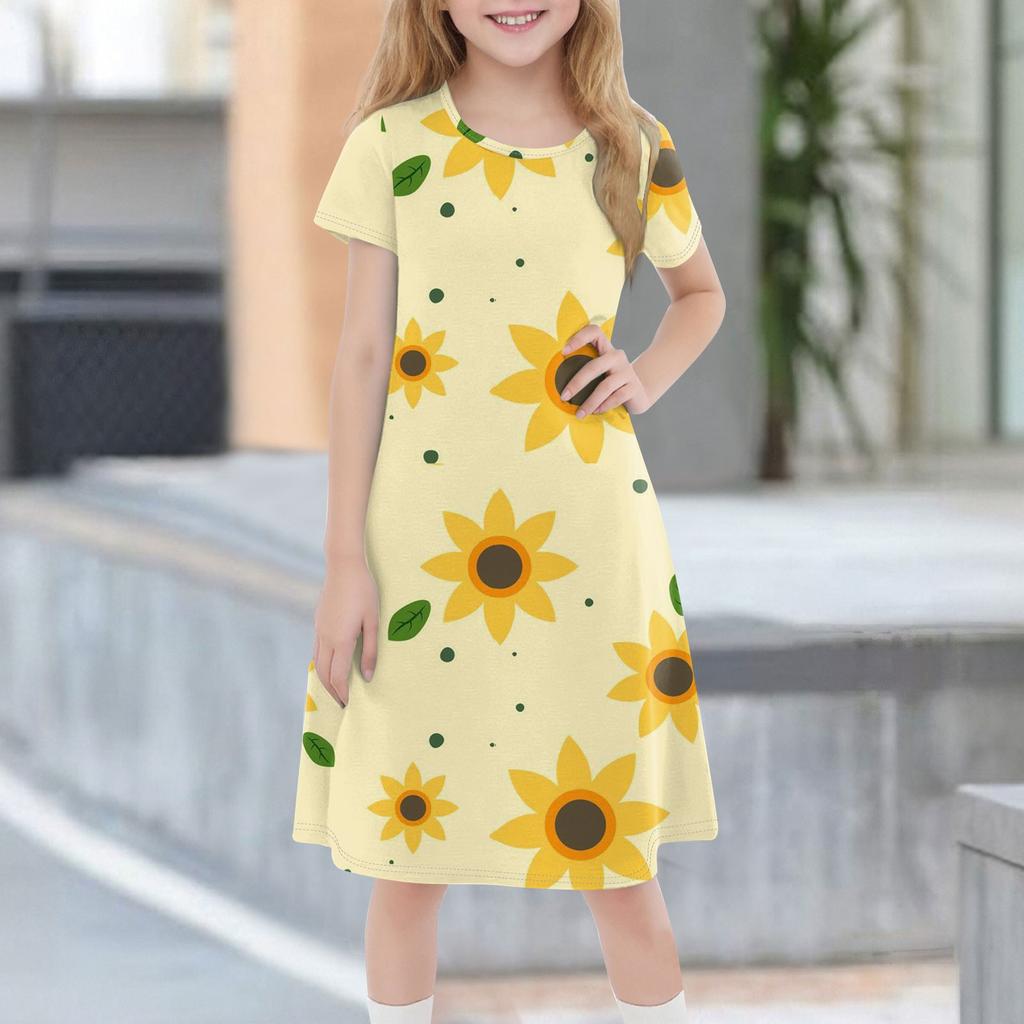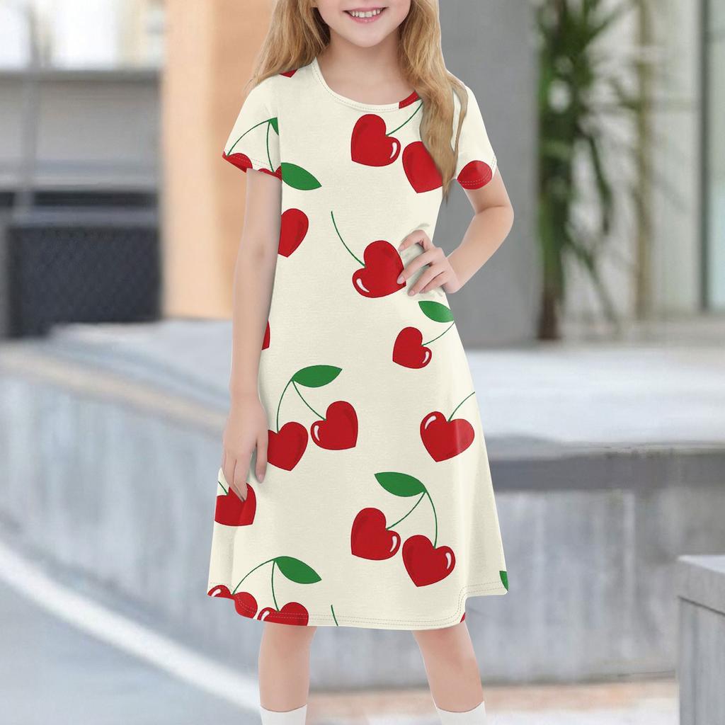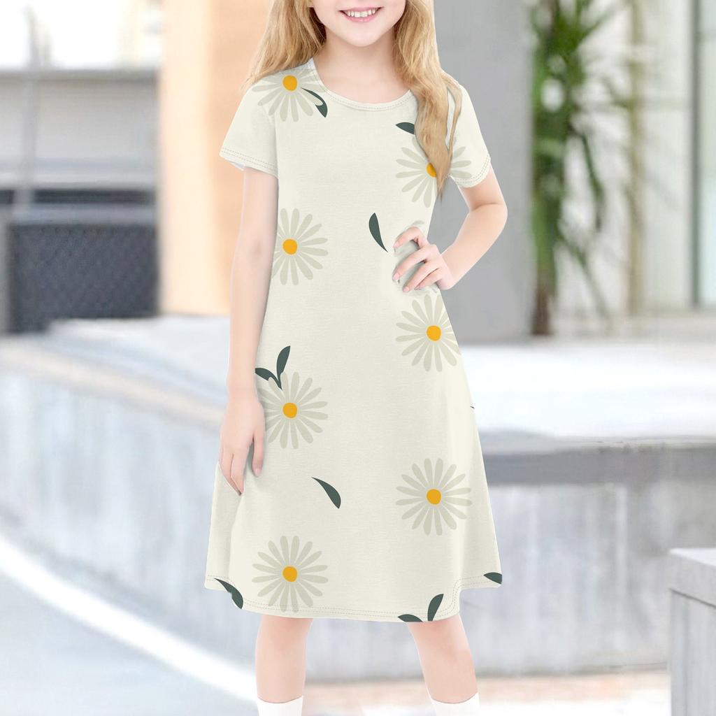 Детское летнее повседневное модное платье с короткими рукавами и круглым вырезом