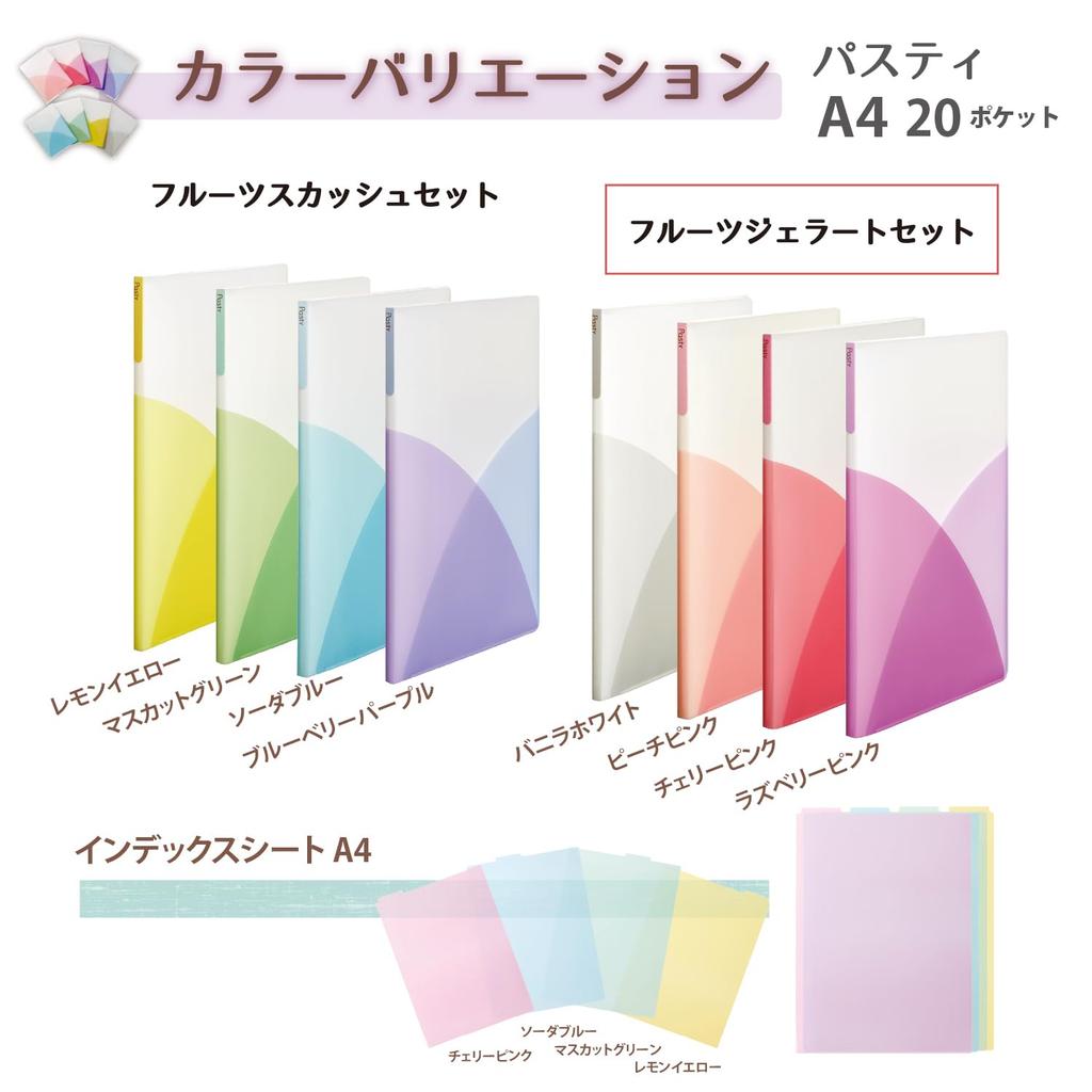 Plus Прозрачная папка-файл А4 Вертикальная 20 карманов Пастельный Фруктовое мороженое 4 цвета 1 комплект индексов +