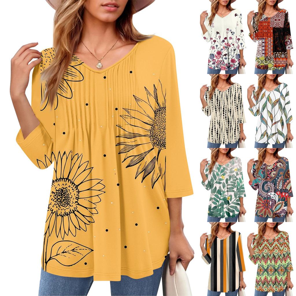 Женские топы с V-образным вырезом и рукавом три четверти в полоску, плиссированные, повседневные, летние, модные, рубашки — купить товар онлайн с бесплатной доставкой до всему миру!
