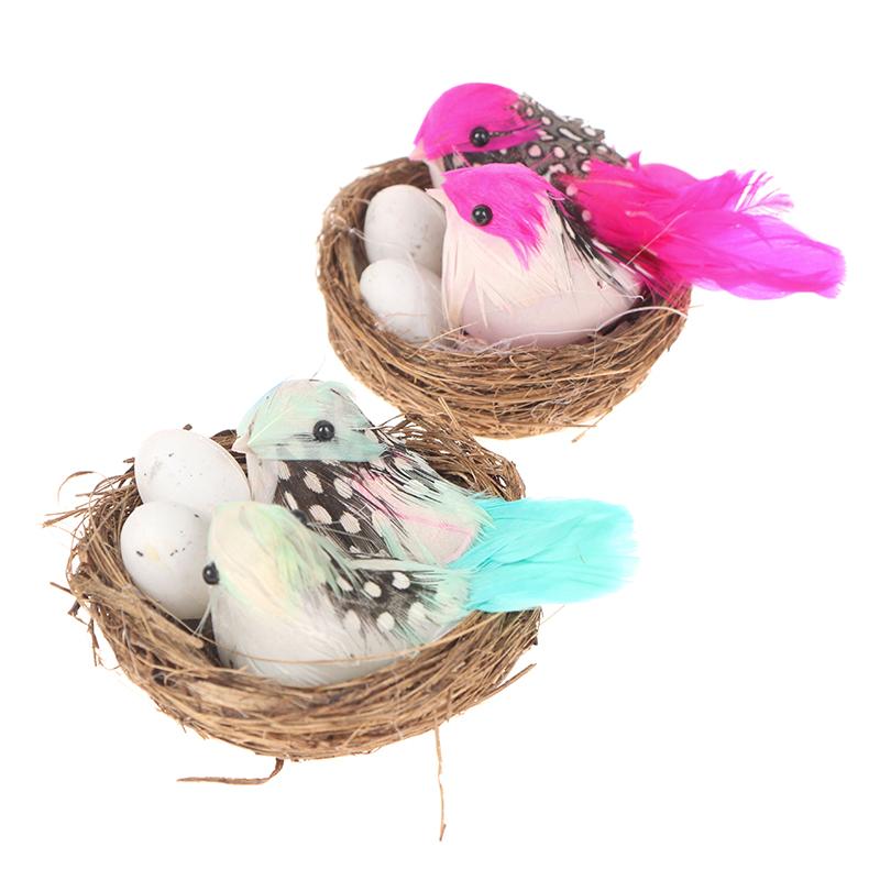 1 комплект искусственных пернатых птиц, гнезд и яиц, творческая скульптура птиц