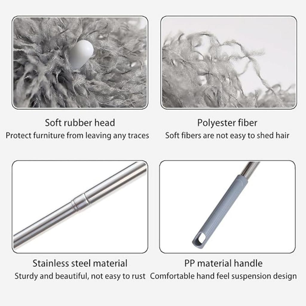 Пылесос Cobweb с удлинителем, гнущаяся головка из микрофибры, моющиеся щетки с длинной ручкой для чистки потолочных вентиляторов, жалюзи, мебели и автомобилей, серые