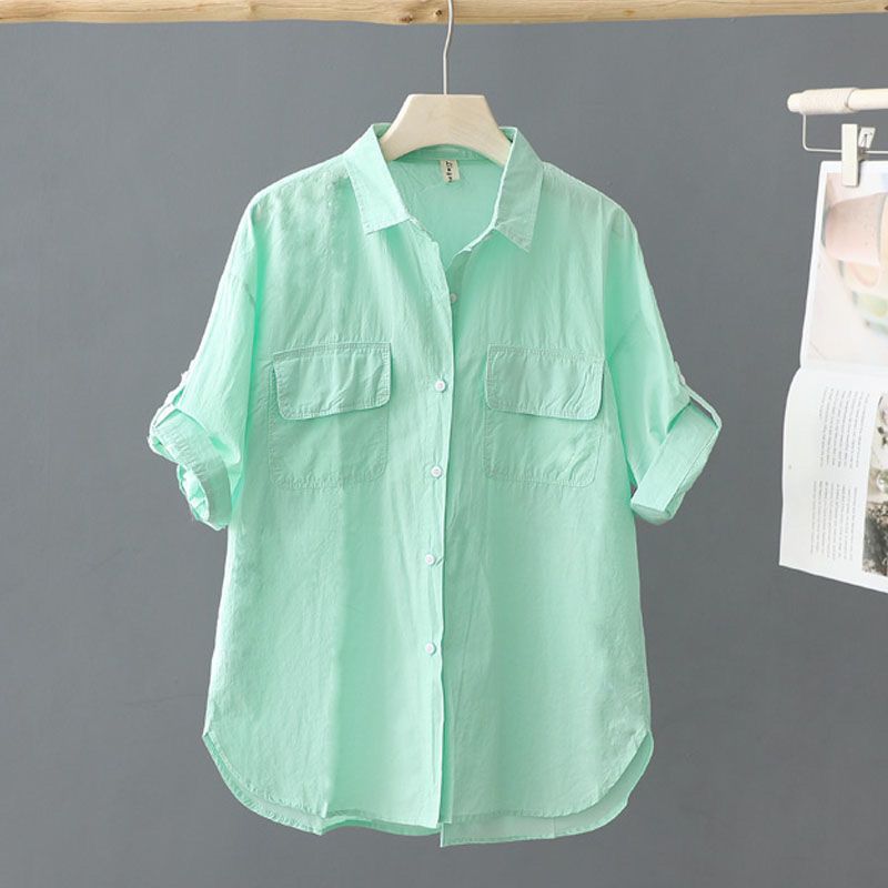 Рубашка из чистого хлопка с короткими рукавами, однотонная, для женщин, летняя, новая, верхняя одежда, свободный и тонкий топ