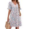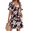 Летние платья для женщин с V-образным вырезом, оборками и коротким рукавом, повседневное свободное платье с принтом, пляжное платье с карманами