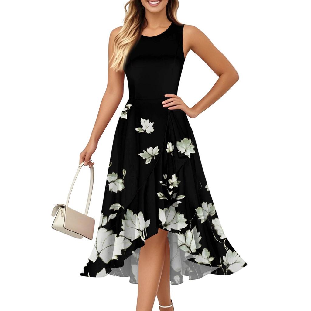 Женские модные повседневные платья-платья без рукавов с застежкой-молнией и круглым вырезом с оборками