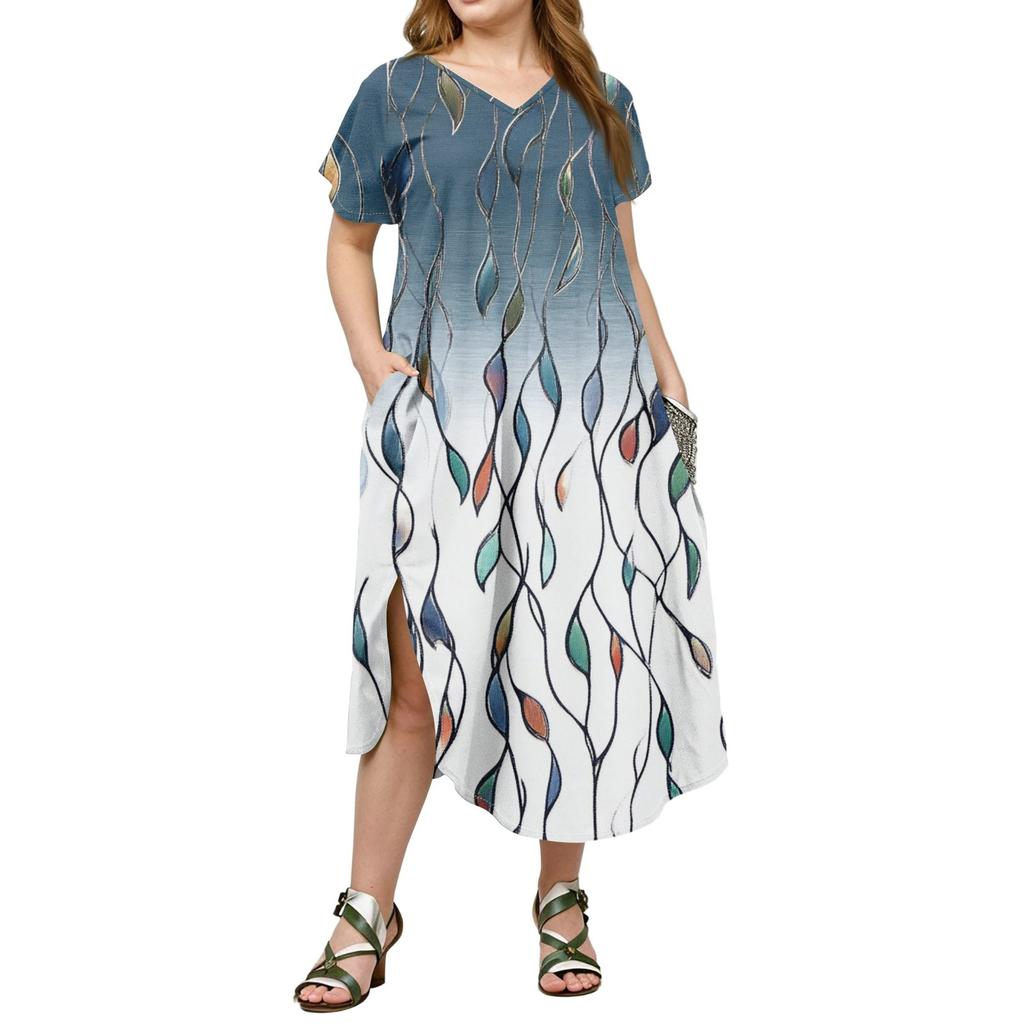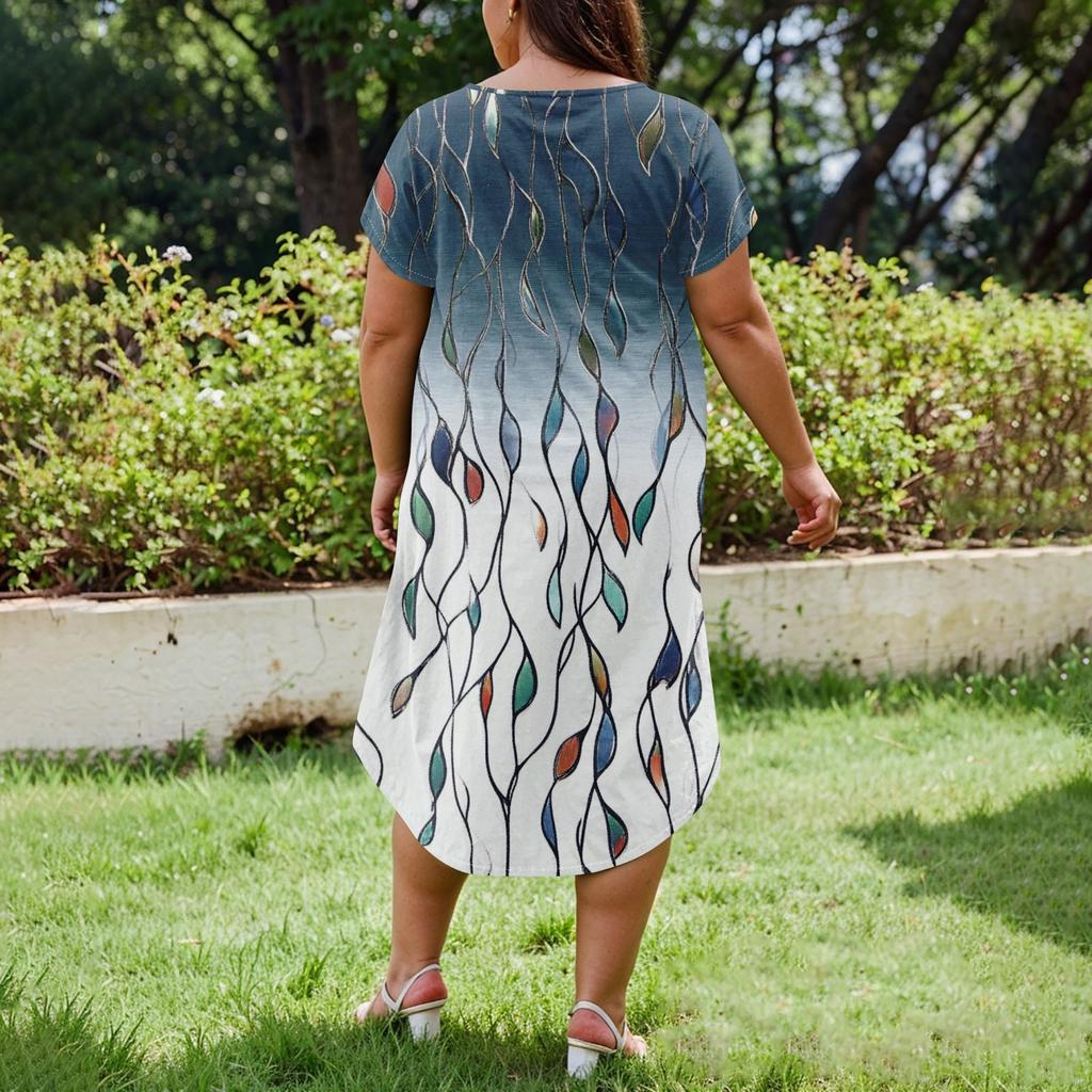 Женское повседневное платье с коротким рукавом и круглым вырезом больших размеров Temperament