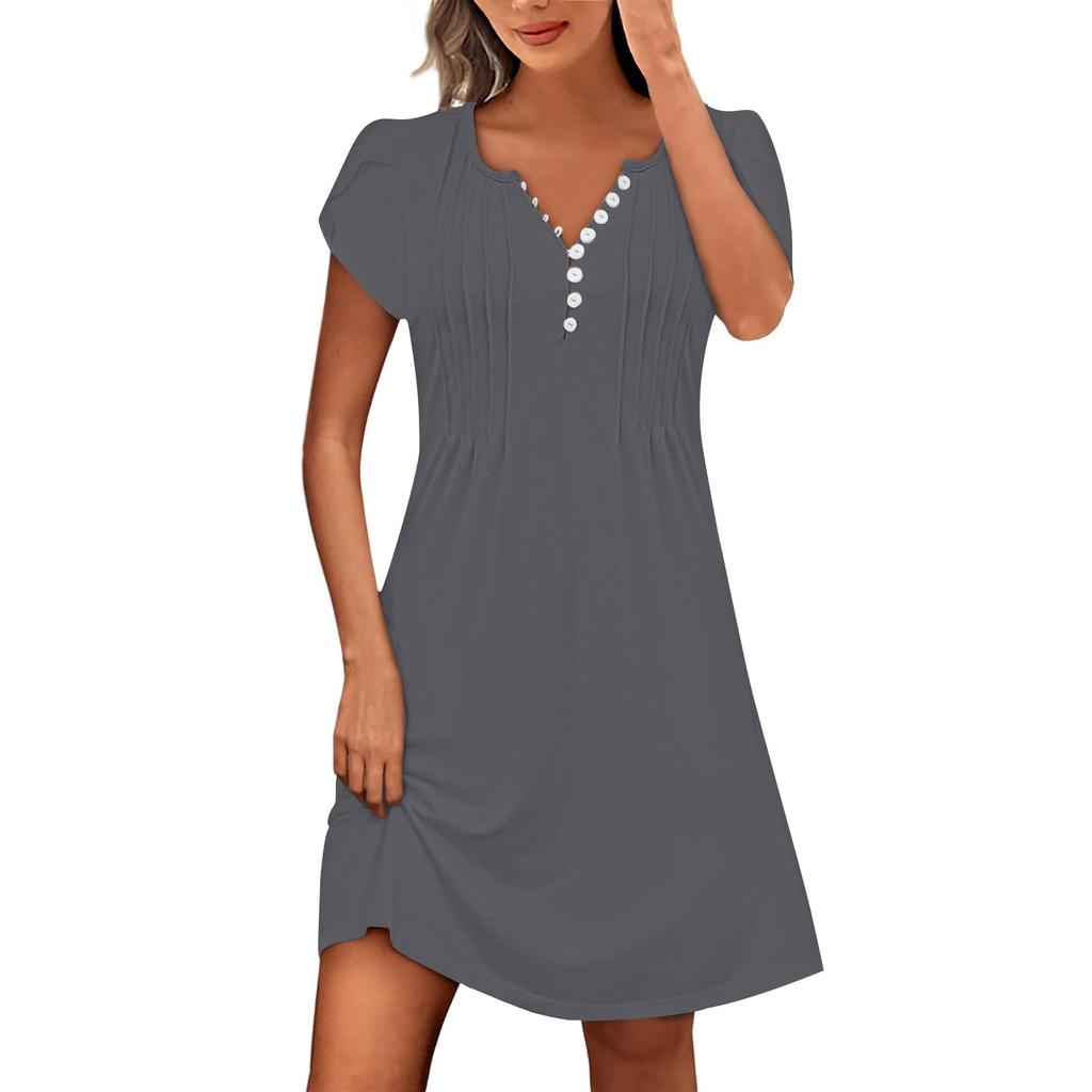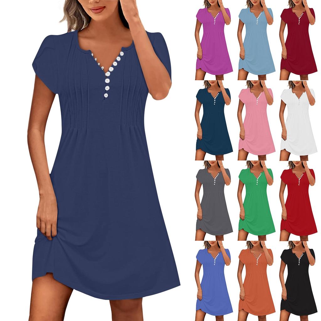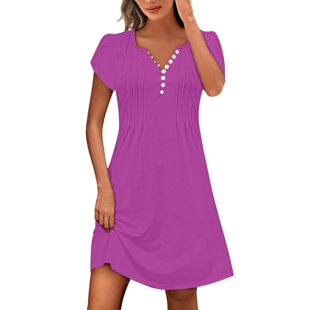 Характеристики: Особенности: Он легкий, струящийся, дышащий, мягкий и удобный.. Он может сохранять прохладу и комфорт в течение всего дня.. Узкое платье: Сексуальный v-образный вырез, рукав-лепесток, застежка на пуговицы, однотонный цвет, складка, платье А-силуэта, длина выше колена. Подходит для: Идеально подходит для весенних и летних дней.. Он входит в женский гардероб и подходит для различных случаев, таких как выход в свет, пляж, годовщина, фестиваль, шопинг, работа, путешествие, отпуск, учеба, спорт, вечеринки, дом, выходные, повседневная одежда.. Мойка: Рекомендуется машинная стирка в холодной воде, не отбеливать, не гладить, не развешивать и не сушить на веревке.. Размер: Доступен в нескольких размерах. Пожалуйста, внимательно проверьте таблицу размеров перед покупкой. Если у вас есть какие-либо вопросы, пожалуйста, свяжитесь с нами. Информация о товаре: Сезон:Осень/Весна/Зима/Лето Пол:Женский случай:Ежедневный материал:Полиэстер Стиль:Повседневный,модный крой:Подходит по размеру Толщина:Стандарт Как мыть:Ручная стирка Холодная, повесьте или высушите линию Что вы получаете:1 x женщин платье