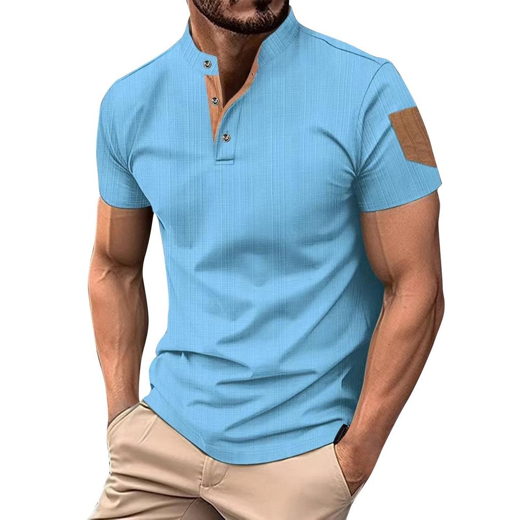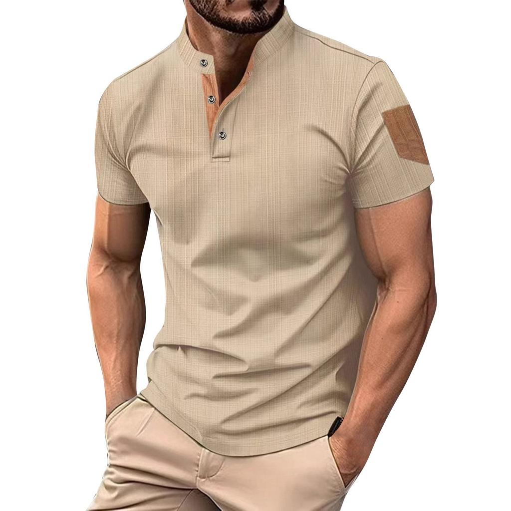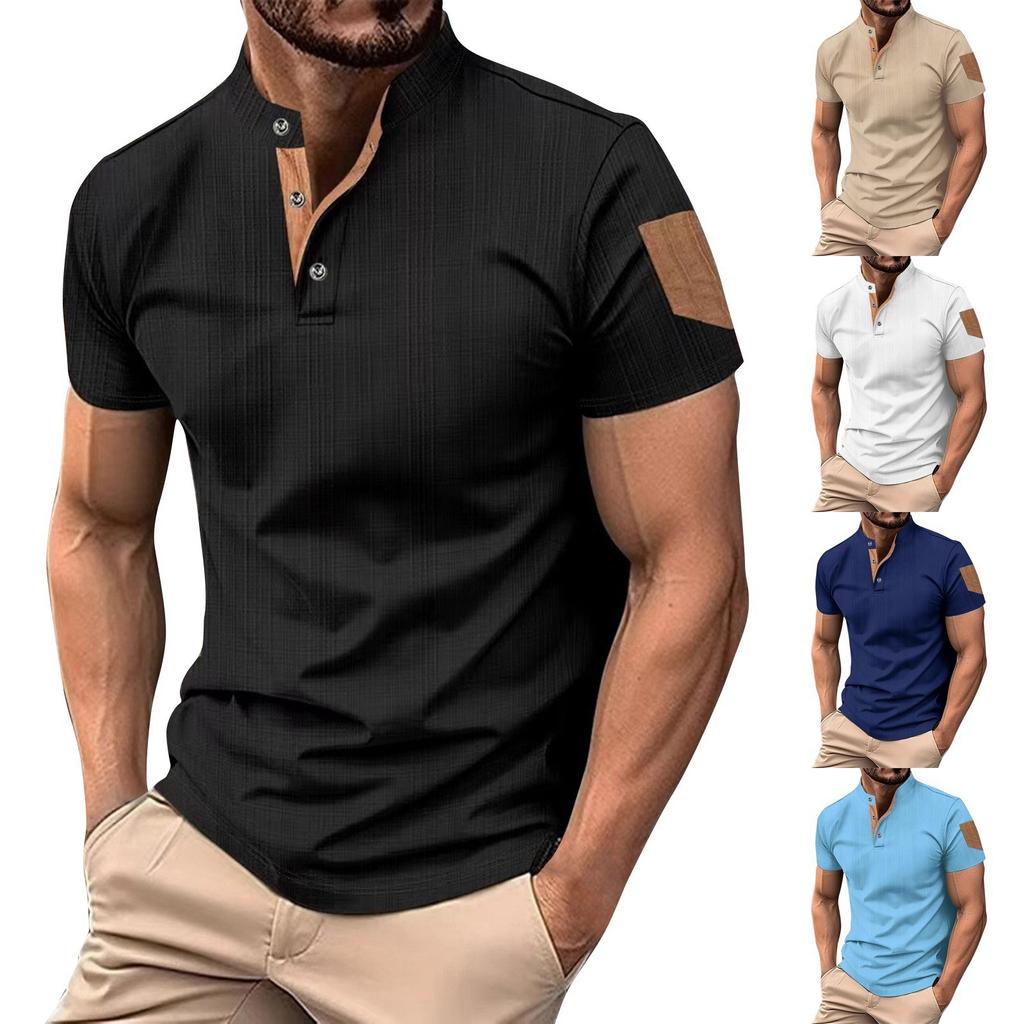 Мужские летние однотонные ретро-топы с коротким рукавом, мужские повседневные модные топы