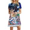 Под морем платья с рисунком кита на лето 2023 года, новые женские платья большого размера с коротким рукавом и 3D-принтом, модное свободное платье