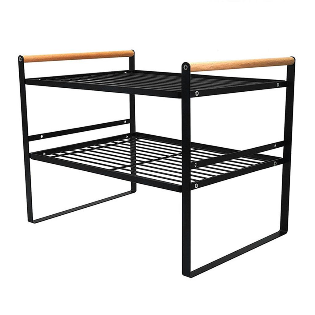 Двухъярусная кухонная полка для хранения, 2 уровня, нескользящая многофункциональная кухонная полка-органайзер, черная — купить товар онлайн с бесплатной доставкой по всему миру!