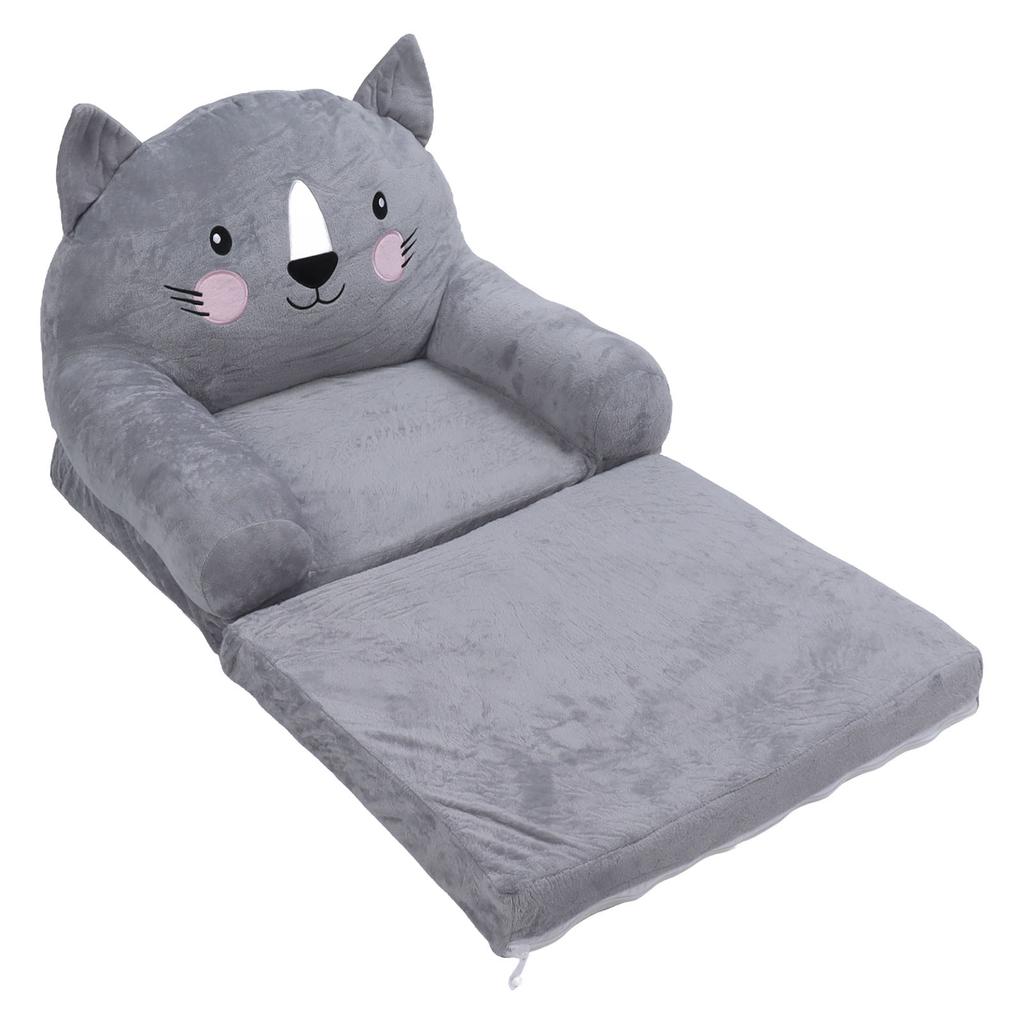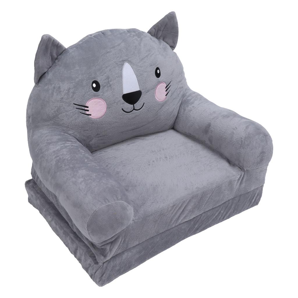 Детский стульчик серый мультяшный стиль складной широкий ручка устойчивая спинка дышащий детский диван для дома