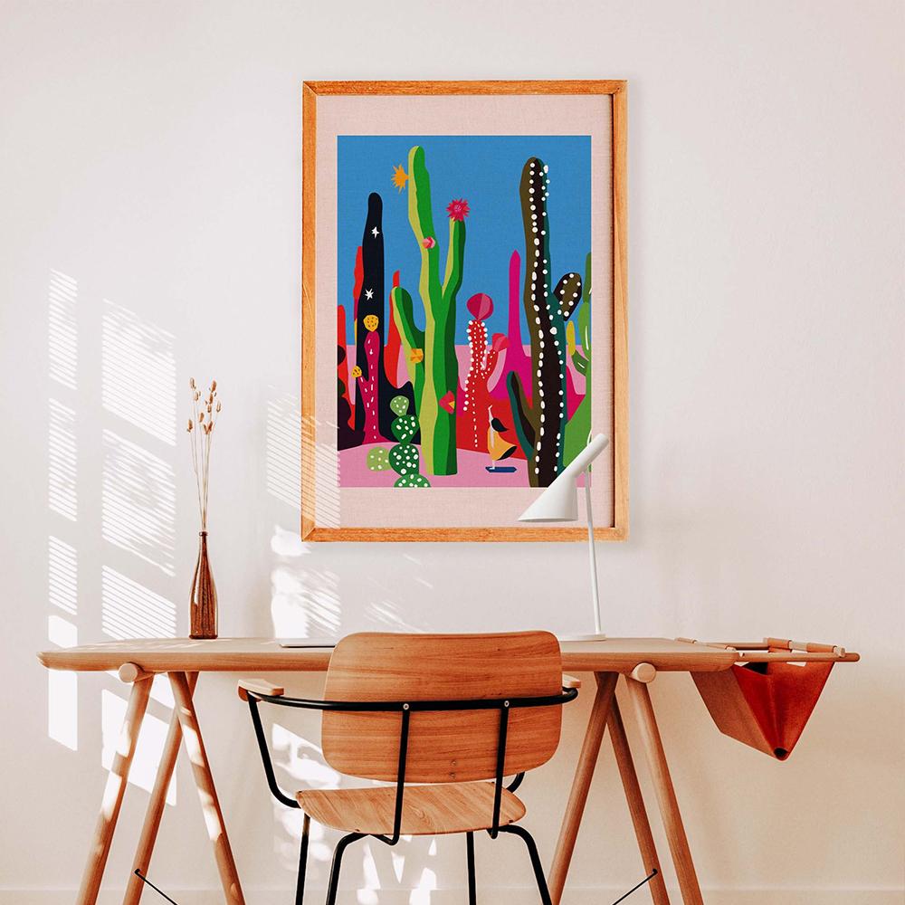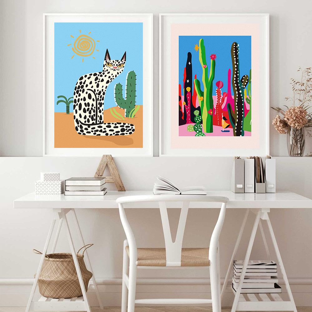 Cat Cactus Wall Art Canvas Painting Floral Garden Cactus Jungle Abstract Plant Desert Poster and Print Picture Modern Home Decor No Frame