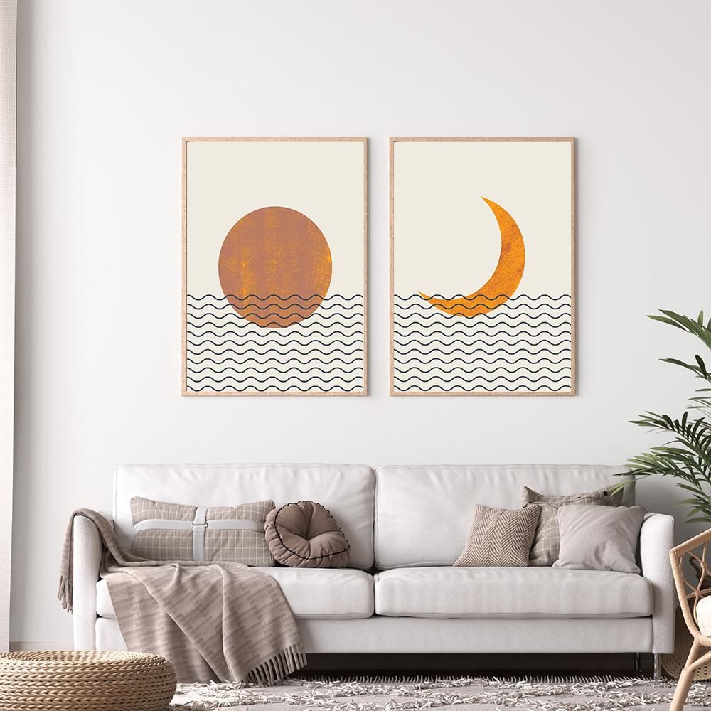 Абстрактный пейзаж Солнце Луна Волны Бохо Печать на холсте Картина Настенные художественные фотографии Плакаты для гостиной Домашнее украшение без рамки