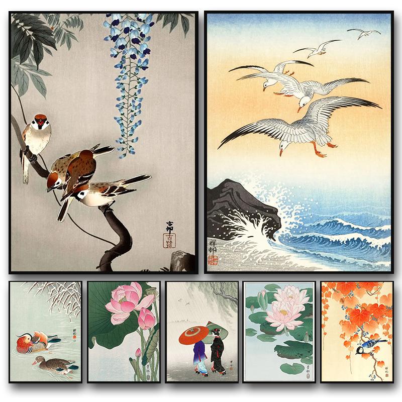 Японский настенный постер Ohara Koson Ukiyo, винтажная золотая рыбка, лотос, сова, журавль, холст, картина для гостевой комнаты, домашнего бара, кафе, декор