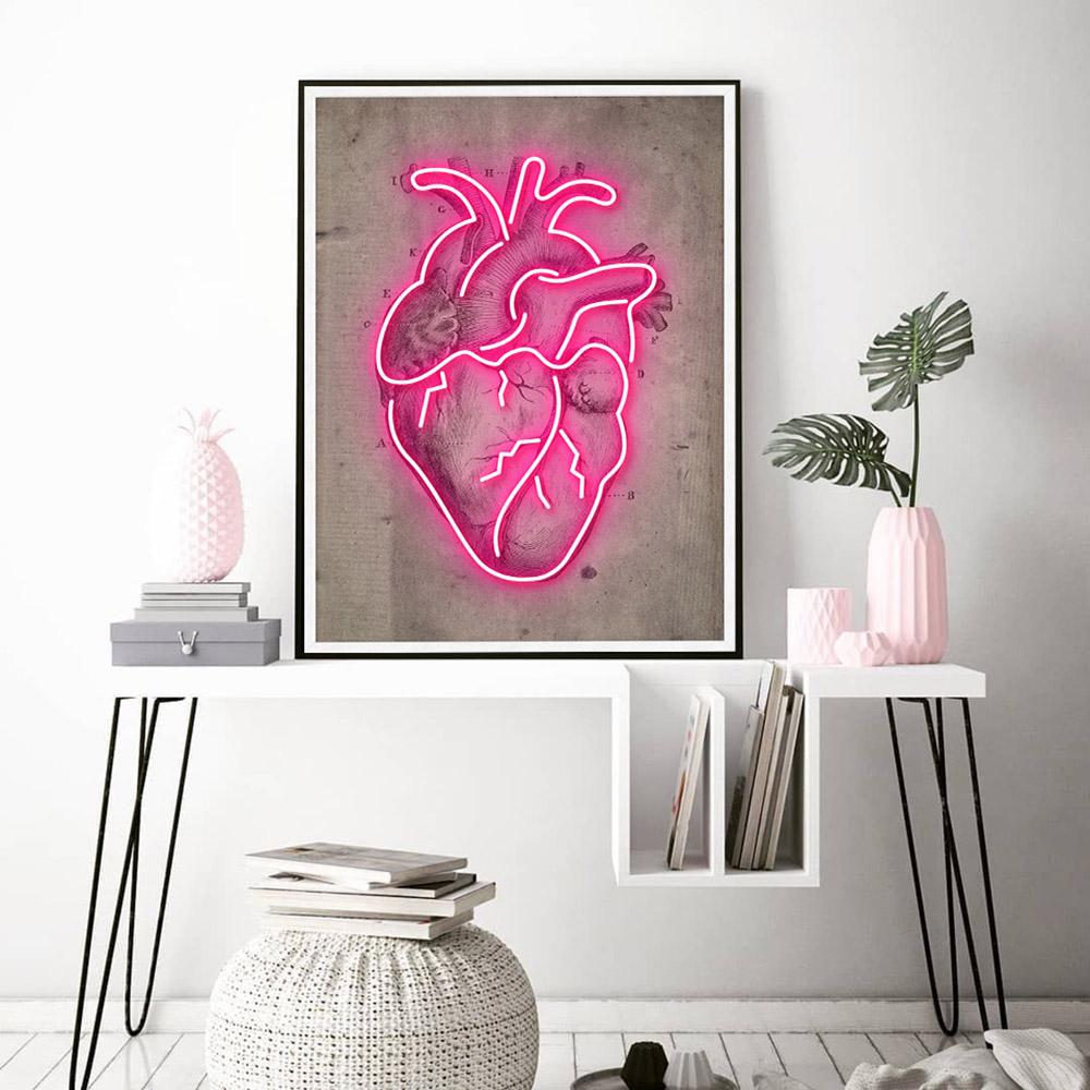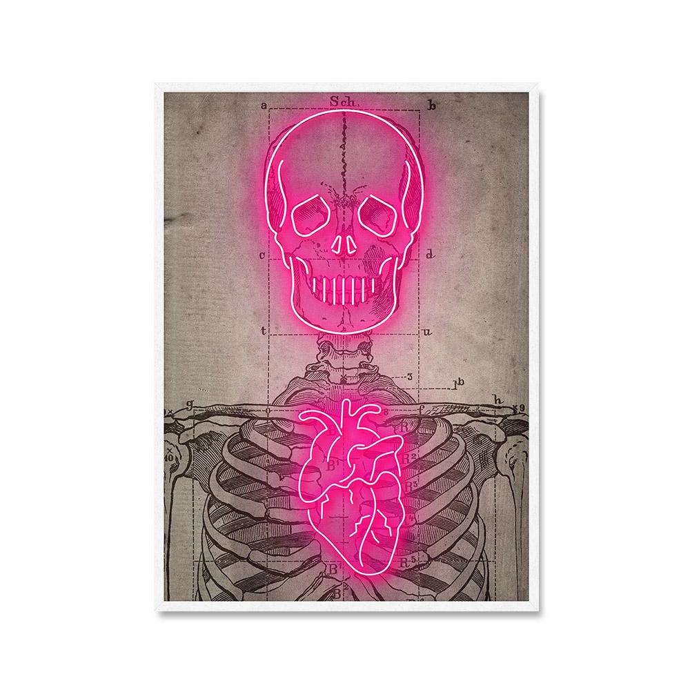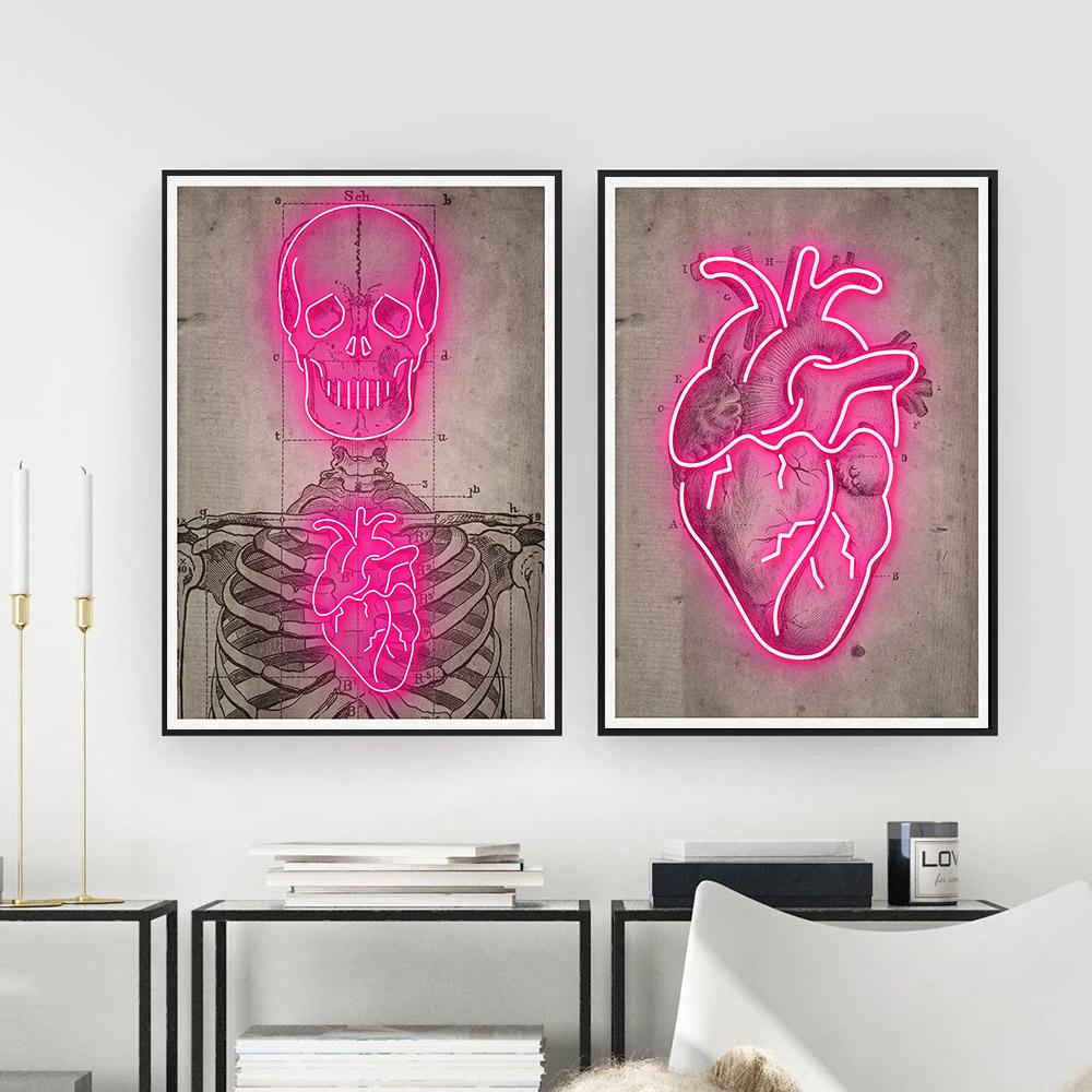 Неоновое сердце скелет винтажная картина настенная живопись холст плакаты и принты домашний декор фреска для гостиной бар украшение без рамки