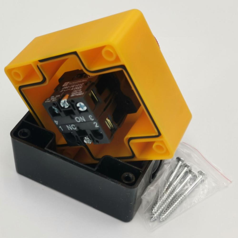 Подробное описание продукта: 1. НЗ контакт + НО контакт 2. Функции аварийного останова 3. 1 красная грибовидная кнопка 4. красная грибовидная кнопка, диаметр 40 мм,