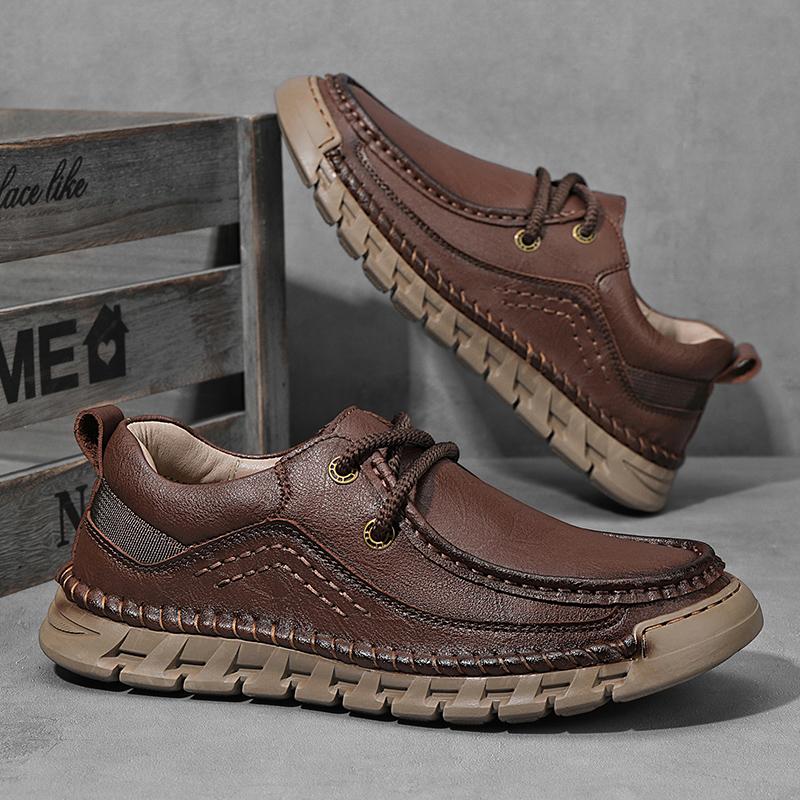 Высококачественная брендовая мужская кожаная повседневная обувь на шнуровке с толстой подошвой, мужская походная обувь на открытом воздухе, нескользящая обувь Оксфорд — купить товар онлайн с бесплатной доставкой по всему миру!
