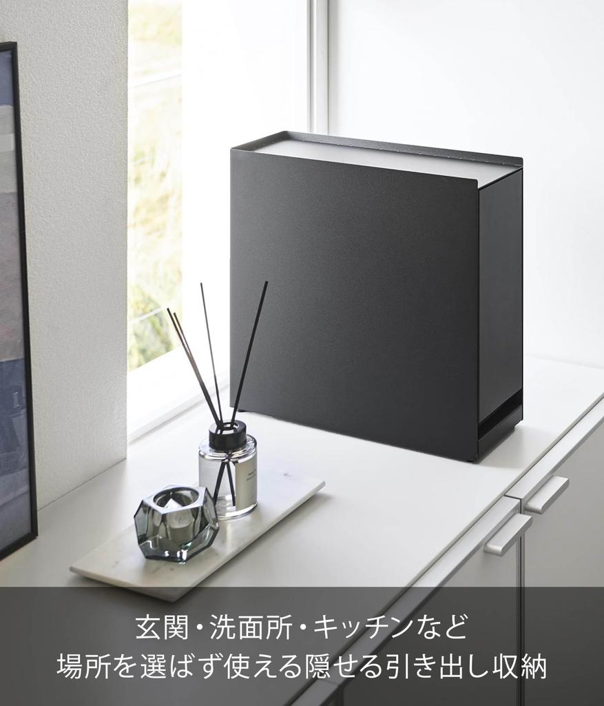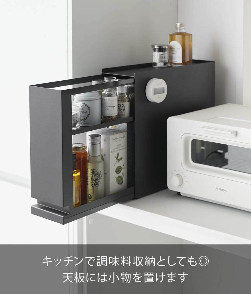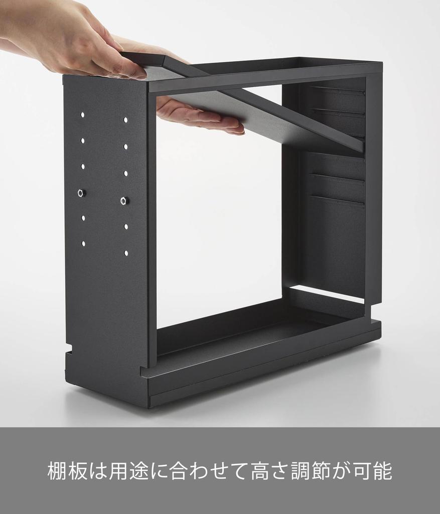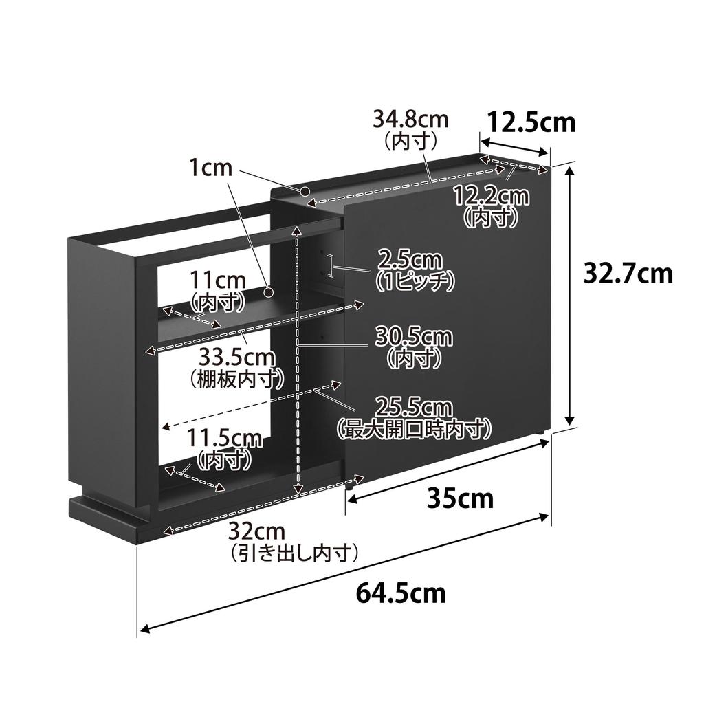 Yamazaki Jitsugyo Скрытый ящик для хранения вещей, черный, Ш12,5 x Г35 ~ 64,5 x В32,7 см, скрытый ящик для хранения вещей с регулируемой высотой 1429