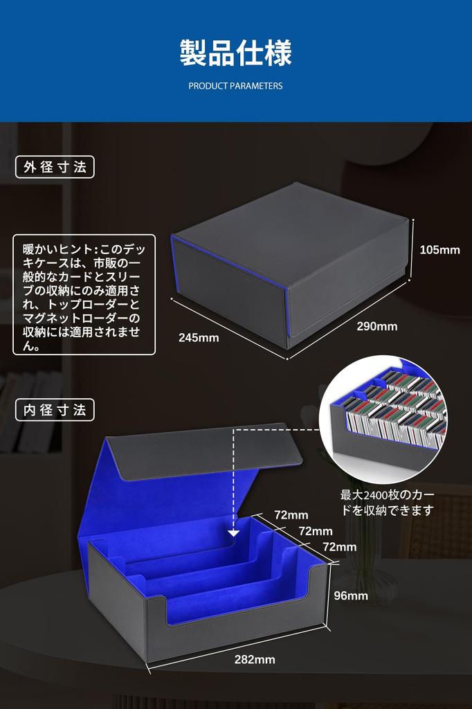 [Большая вместимость: может вместить 2400 карт] Футляр для колоды, разработанный совместно нашей компанией и коллекционером карт, имеет разумный размер для хранения, его легко вставлять и вынимать, и в нем можно хранить до 2400 карт, а также можно легко вставлять карты с протекторами.. Лучший способ хранения карточек, простой и удобный, хороший способ решить проблему беспорядочного коллекционирования.